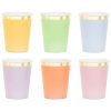 Organizujesz przyjęcie urodzinowe, piknik lub inną imprezę, na której nie może zabraknąć praktycznych i estetycznych dodatków? Zestaw papierowych kubeczków zdecydowanie będzie dobrym wyborem! W skład zestawu wchodzi aż 6 papierowych kubeczków w różnych pastelowych kolorach: żółtym, zielonym, niebieskim, pomarańczowym, fioletowym i różowym. Dodatkowo każdy kubek ozdobiony został złotym kolorem o błyszczącej, metalicznej strukturze.