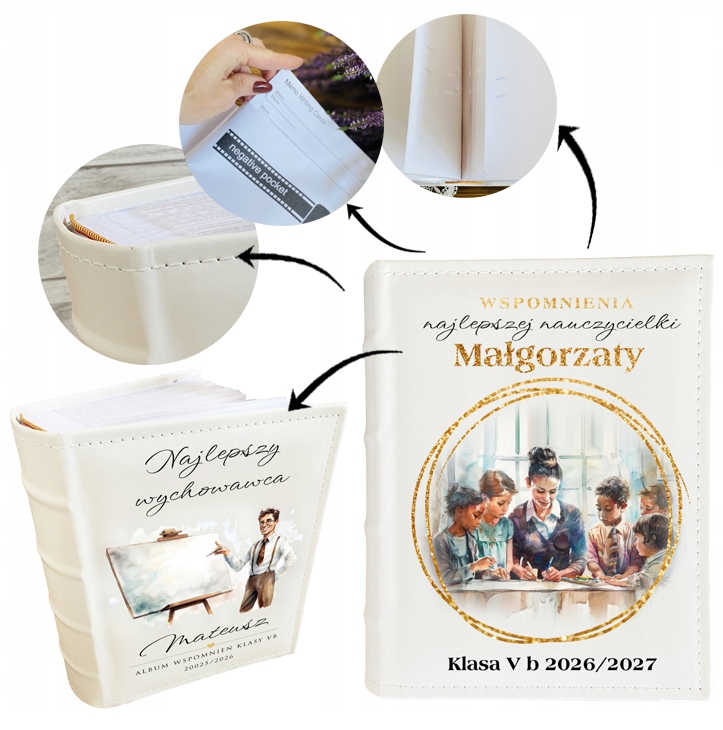 Album ten powstał z myślą o wyjątkowych osobach, które każdego dnia dzielą się swoją wiedzą, cierpliwością i sercem – NAUCZYCIELACH. Z okazji Dnia Nauczyciela pragniemy podziękować za trud, zaangażowanie oraz inspirację, jaką dają swoim uczniom. Niech fotografie będą piękną pamiątką wspólnych chwil, uśmiechów i wzruszeń – przypomnieniem, że praca nauczyciela ma nieocenioną wartość i zostaje w sercach na zawsze. Z okazji tak wyjątkowego dnia warto pomyśleć o upominku, który nie zniknie wraz z upływającym czasem – nasz album to świetna personalizowana i oryginalna pamiątka!