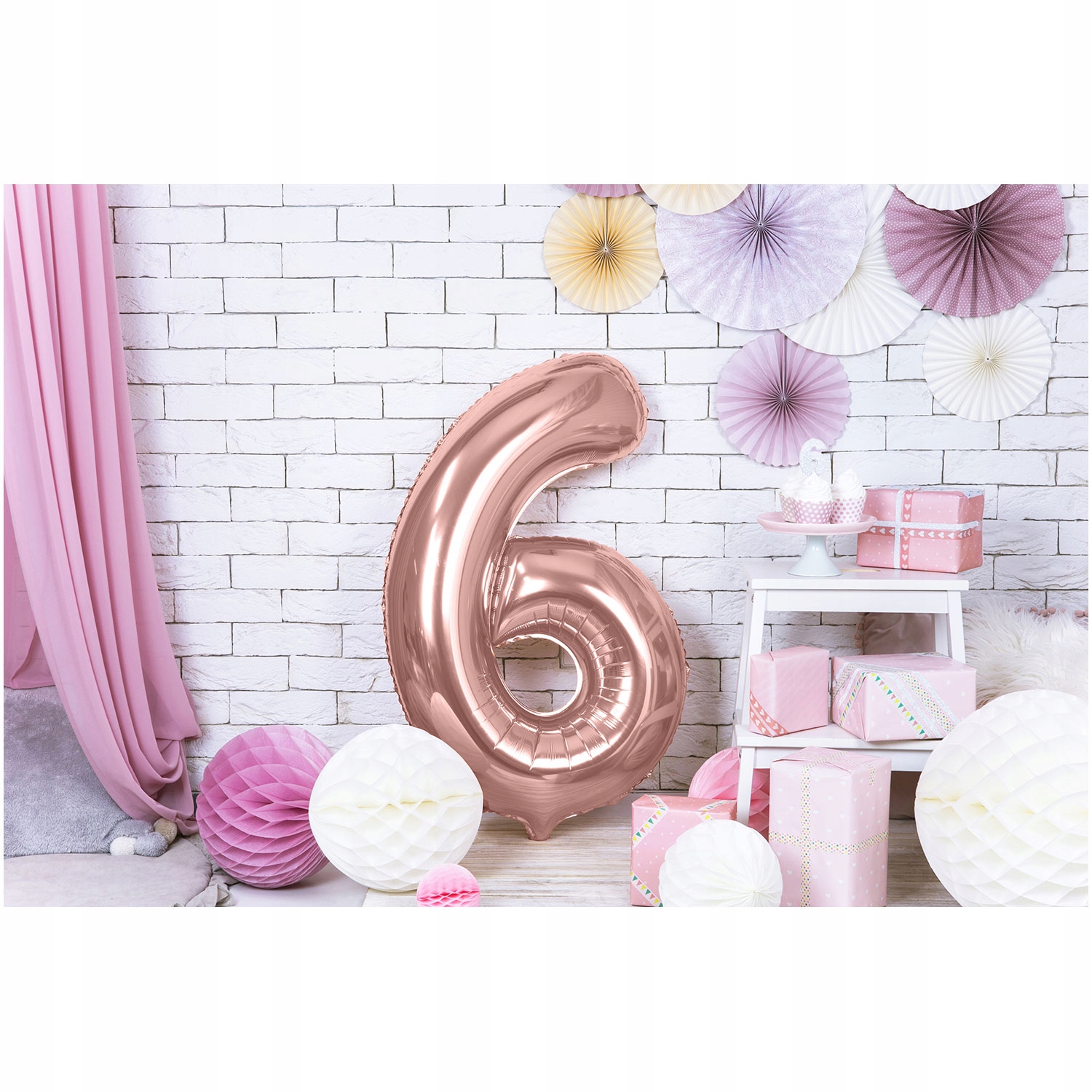 Różowo-złoty balon cyfra 6 na urodziny