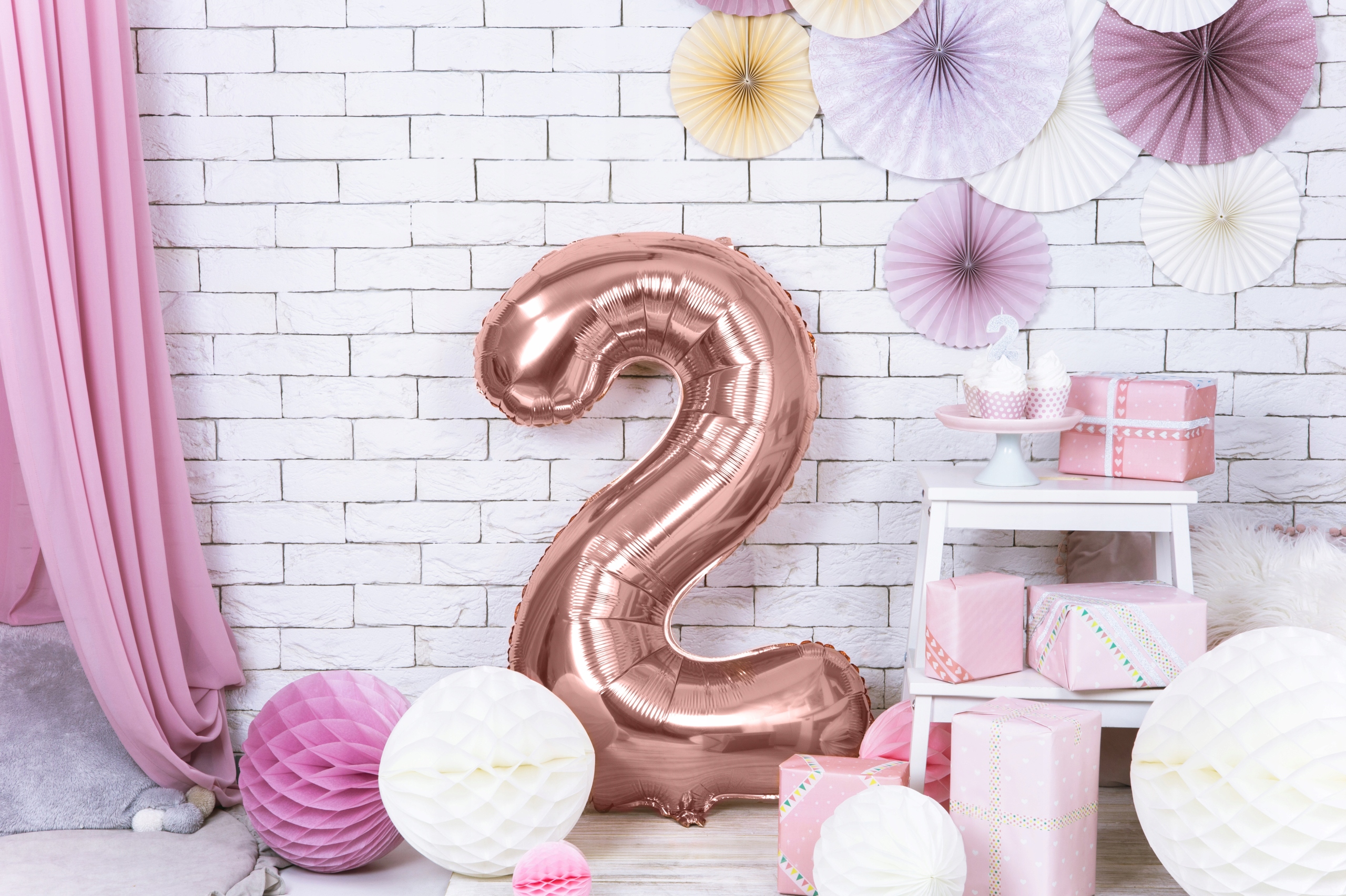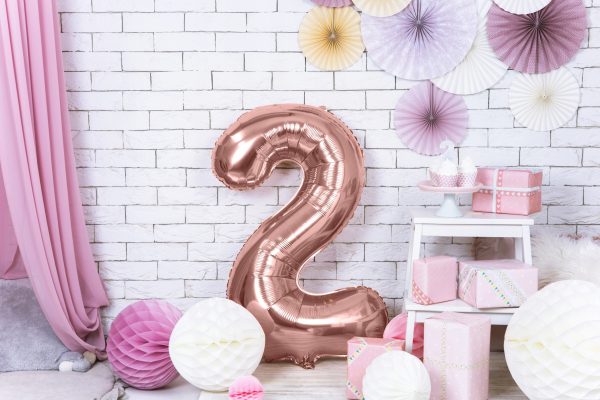 Balony na drugie 2 URODZINY różowe złoto foliowe 86cm
