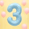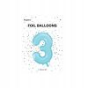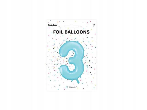 ✔️Balon foliowy “Cyfra 3″, błękitny, PartyDeco, 86 cm 34”