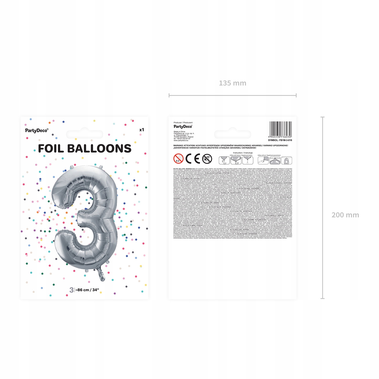 Balon foliowy Cyfra “3”, 86cm, srebrny