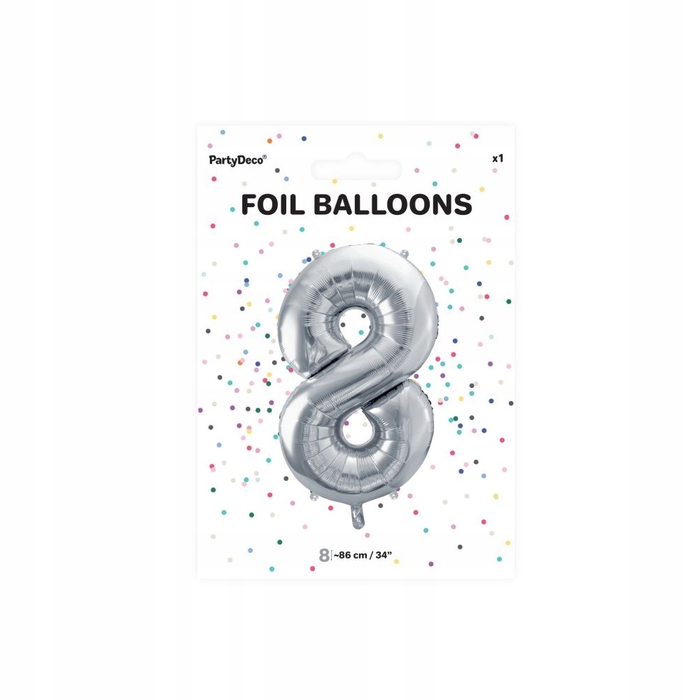 Srebrny balon cyfra 8 na urodziny