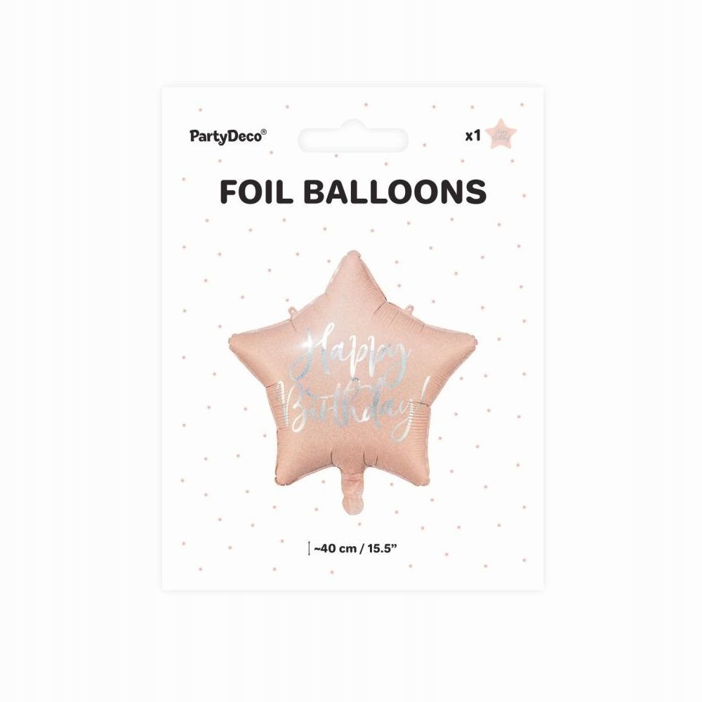 Prezentowany balon foliowy gwiazdka wyróżnia się się wysoką jakością wykonania. Do jego wyprodukowania wykorzystano wytrzymałą metalizowaną folię w kolorze pudrowego róży ze srebrnym urodzinowym nadrukiem Happy Birthday.