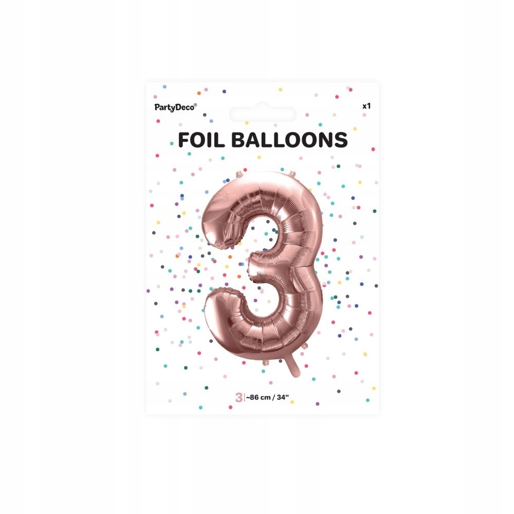 Balon foliowy cyfra 3 w kolorze różowego złota