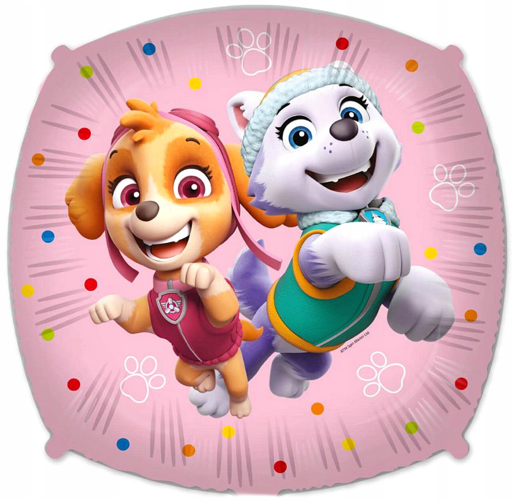 Foliowy balon z wizerunkiem Skye i Everest, czyli dwóch głównych bohaterek serialu animowanego Paw patrol. Wesołe psiaki z uśmiechem na twarzy i w radosnym tonie wyskakują w twoją stronę i zachęcają do zabawy. Balon w kolorze różowym sprawdzi się idealnie np. jako ozdoba na przyjęciu urodzinowym młodej fanki Psiego patrolu. Lub może zostać wręczony w prezencie. Unoszący się w powietrzu balon z pewnością wywoła uśmiech na twarzy osoby obdarowanej.