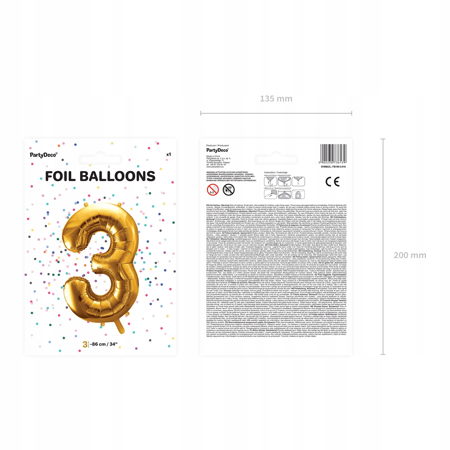 Balony foliowy na trzecie 3 URODZINY złote foliowe 86cm