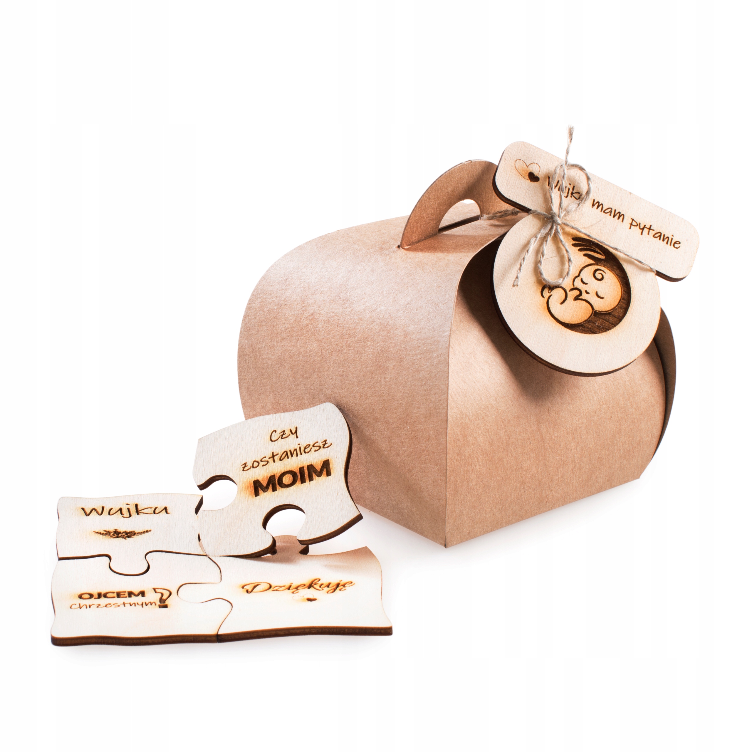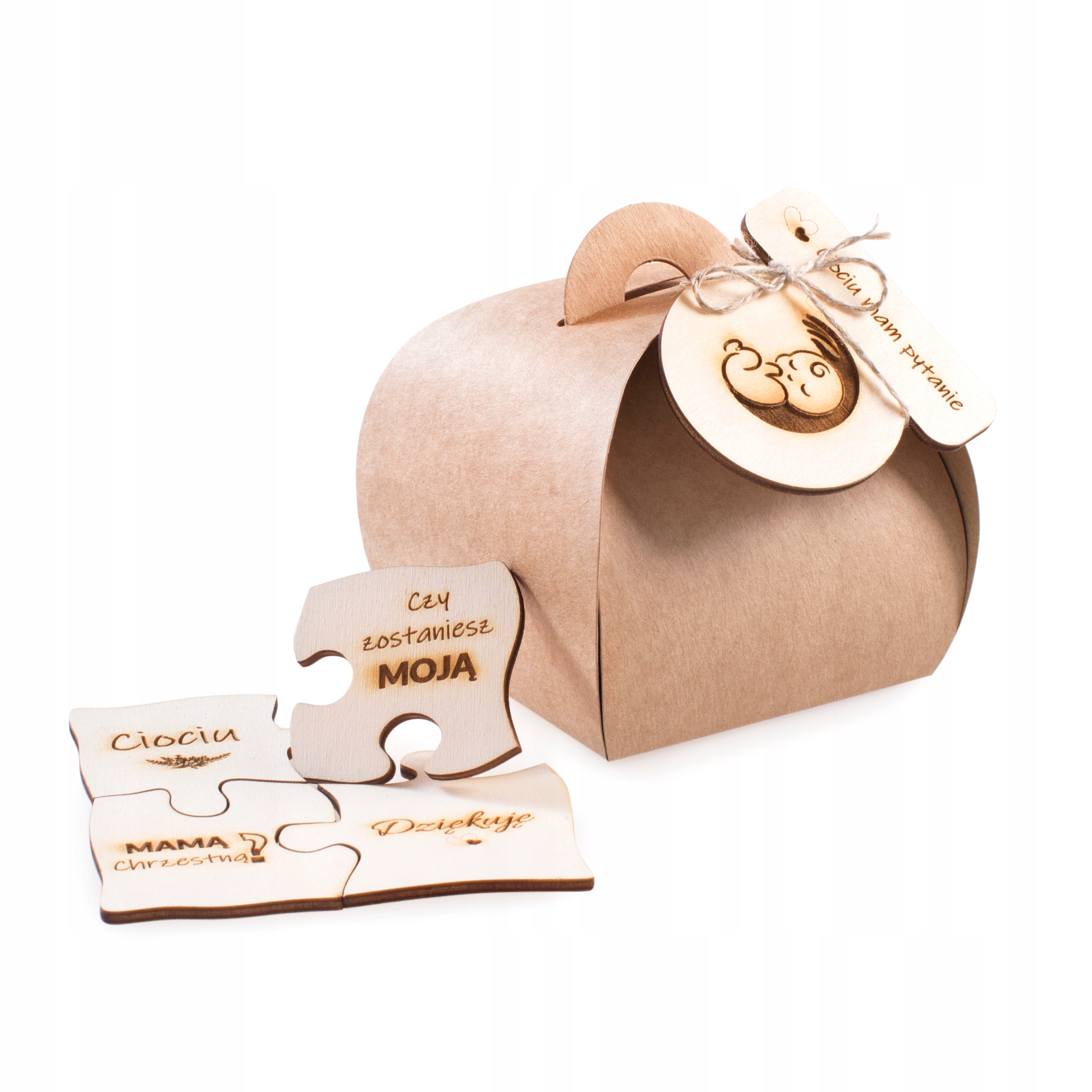 Drewniane puzzle z grawerem – zapytaniem Czy zostaniesz moją MAMĄ Chrzestną