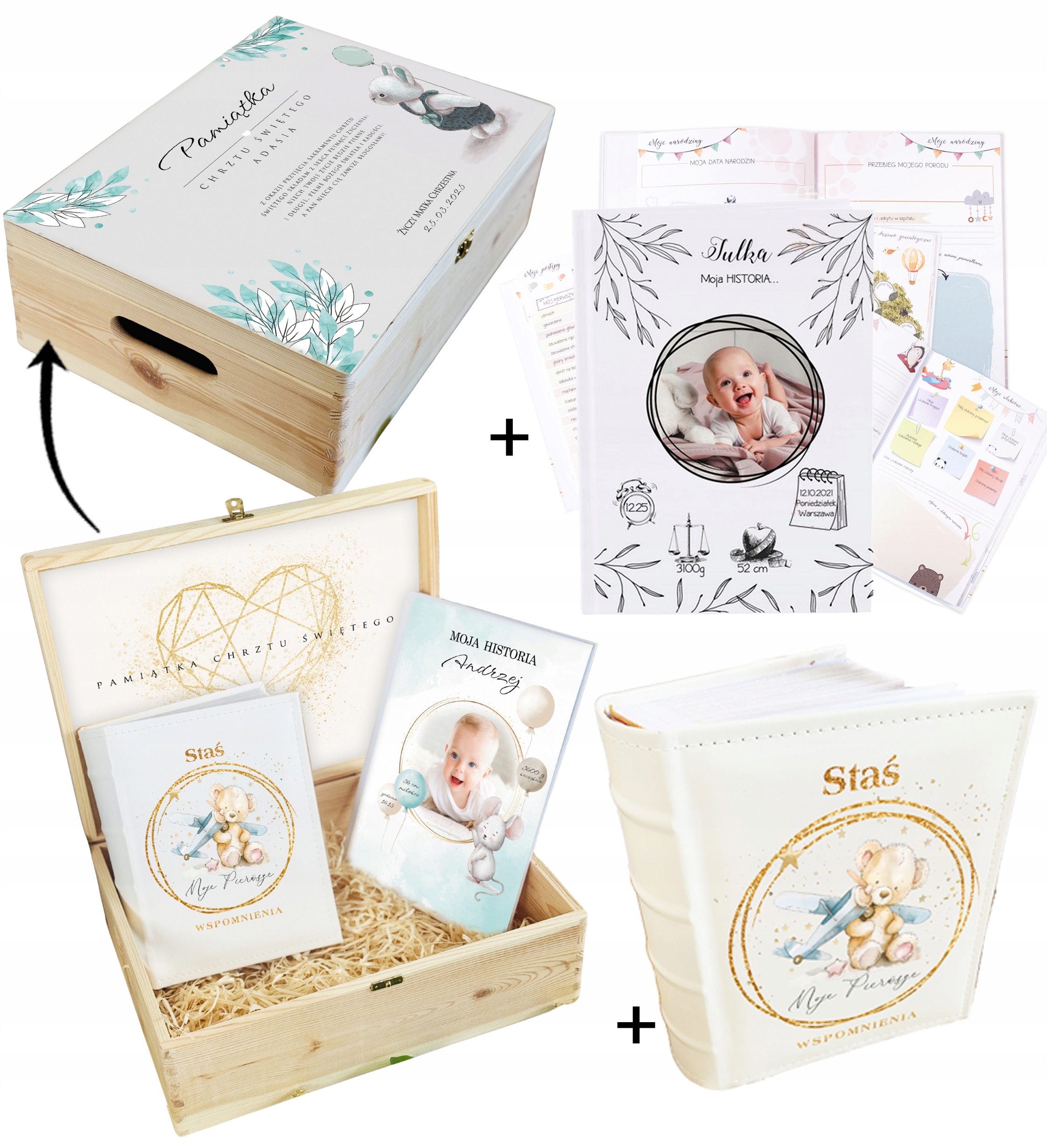 - Zestawy personalizowane bajek, książek i albumów na zdjęcia w skrzyni i nie tylko