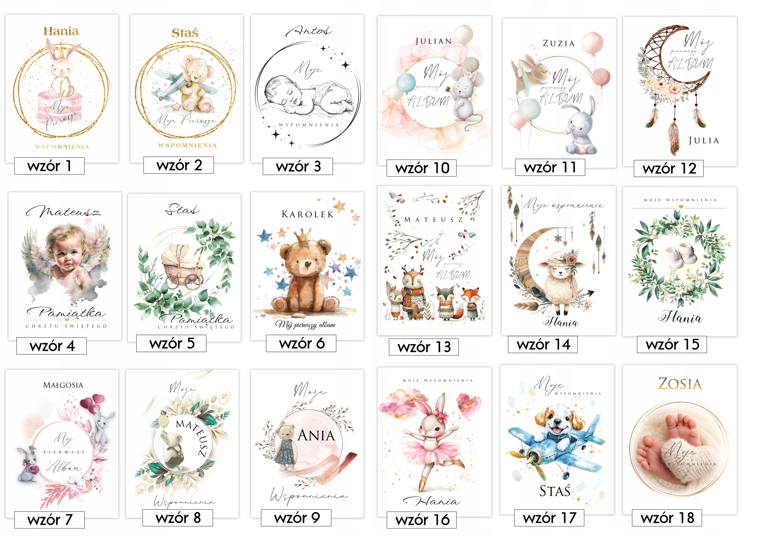 3) wybrany wzór albumu na zdjęcia + IMIĘ + w przypadku wzoru ze zdjęciem, prześlij je sprzedającemu