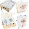 - Wypełnienie wełną drzewną, wieko z wklejonym nadrukiem dopełniają eleganckiego wykończenia prezentu