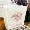Skrzynia pomieści wszelkie pamiątki z dzieciństwa – zdjęcia, pierwsze buciki, kartki i drobiazgi, które rodzina chce zachować na zawsze. To nie tylko prezent, ale piękna opowieść o początku życia dziecka. Idealny prezent od chrzestnych, dziadków lub rodziców