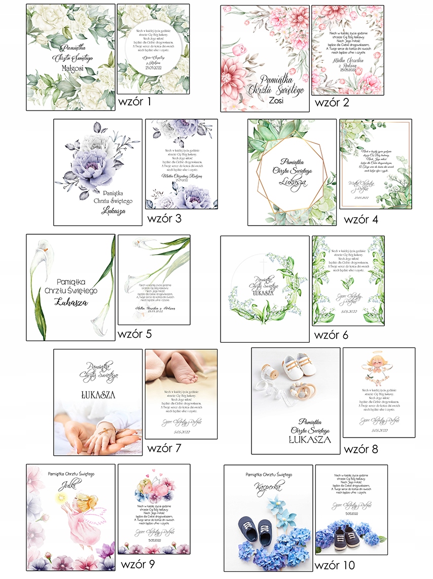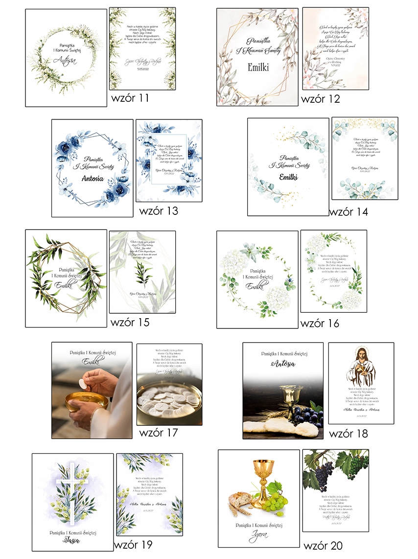 • treść na zewnątrz np. Pamiątka I Komunii Świętej Igora