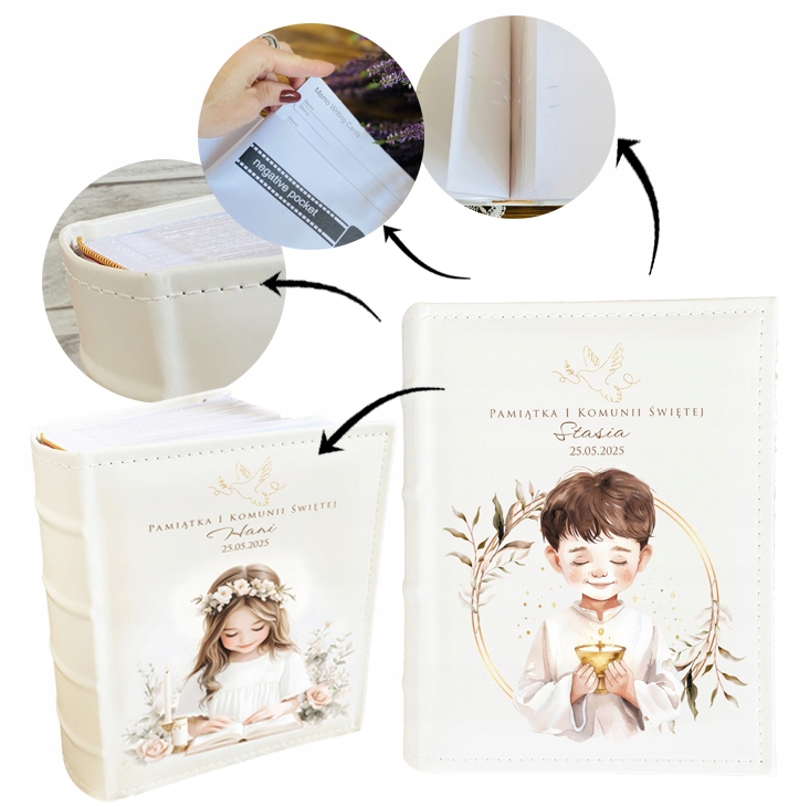 Elegancki album na zdjęcia to wyjątkowa pamiątka z okazji I Komunii Świętej – jednego z najważniejszych dni w życiu dziecka. Pozwala zachować najpiękniejsze chwile: uroczystość w kościele, rodzinne spotkanie, wspólne zdjęcia z bliskimi oraz wzruszające momenty pełne radości i dumy.