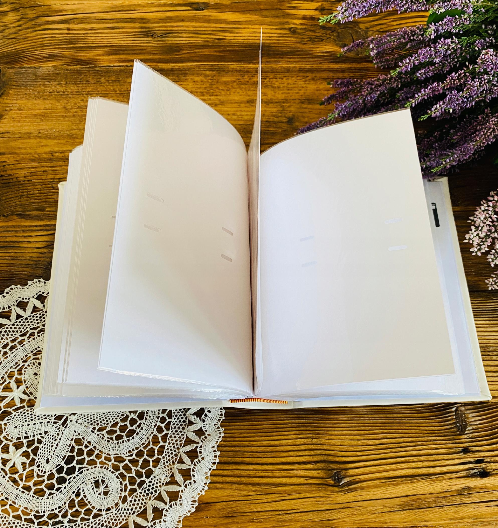 Wnętrze albumu umożliwia wygodne rozmieszczenie fotografii oraz tworzenie własnej historii tego wyjątkowego dnia. To nie tylko praktyczne miejsce do przechowywania zdjęć, ale także sentymentalna pamiątka, do której będzie można wracać przez lata.