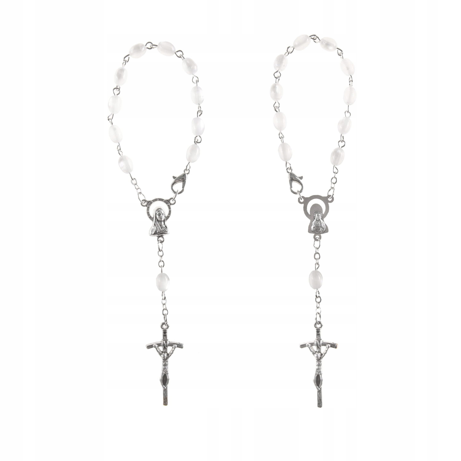 dziesiątek RÓŻAŃCA (białe kamienie, metalowy)