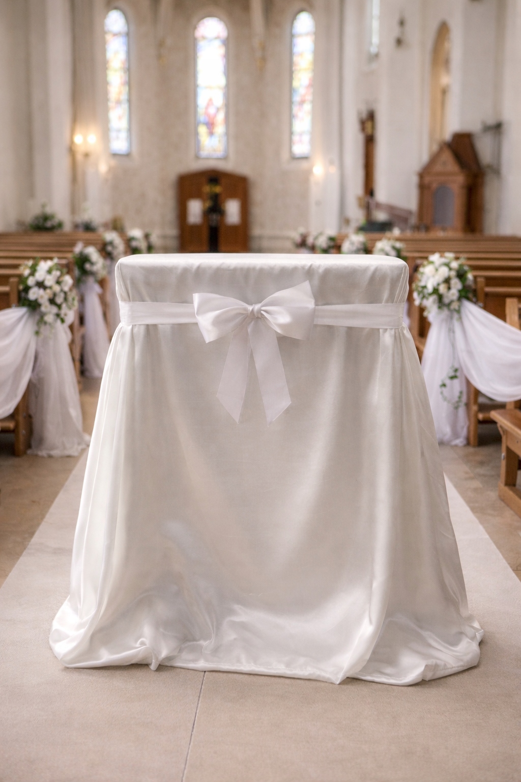 Stwórz wyjątkową oprawę jednej z najważniejszych uroczystości, jaką jest ŚLUB. Elegancki, śnieżnobiały materiał satynowy o subtelnym połysku nadaje klęcznikowi niezwykle podniosły i harmonijny wygląd, podkreślając duchowy charakter chwili.