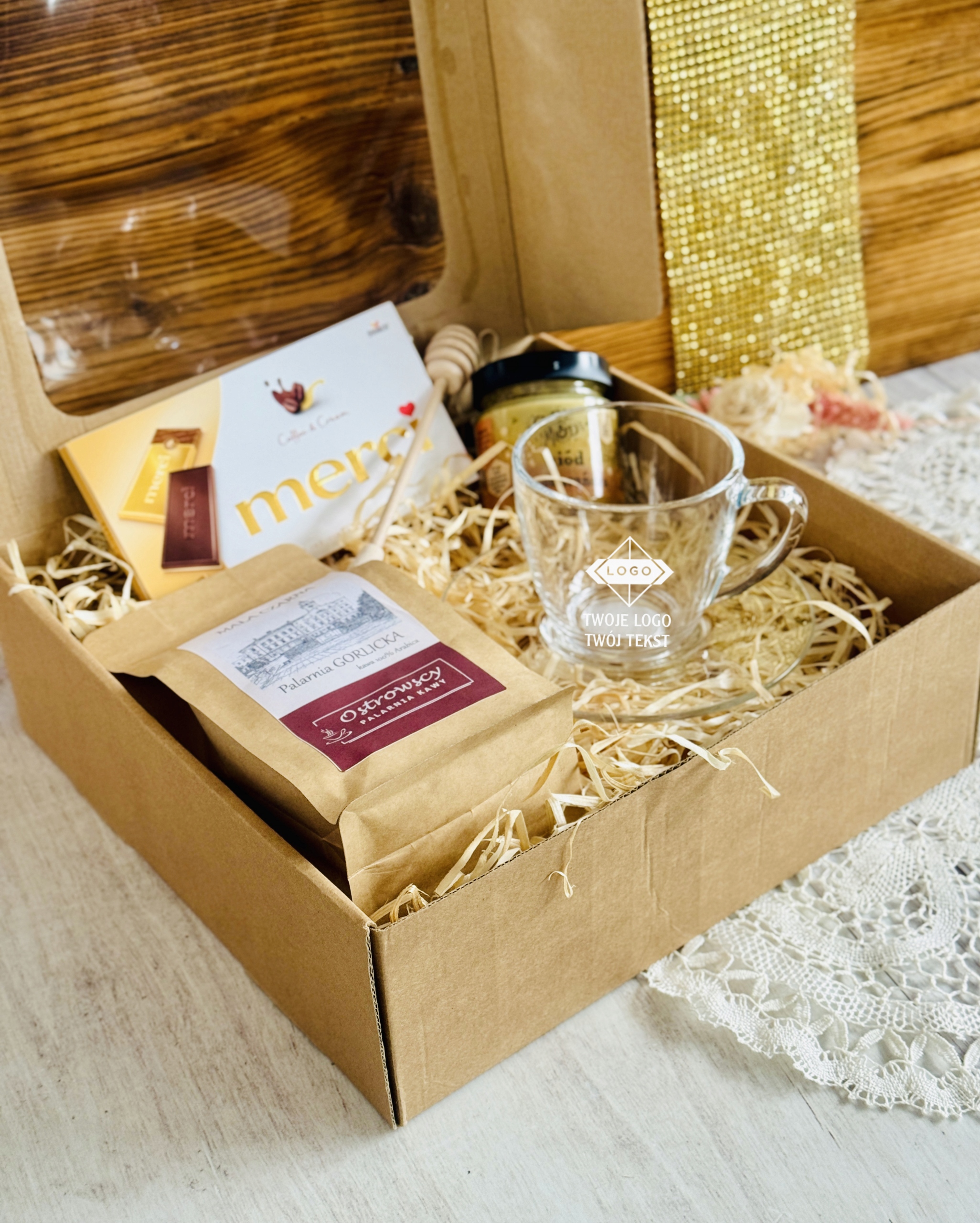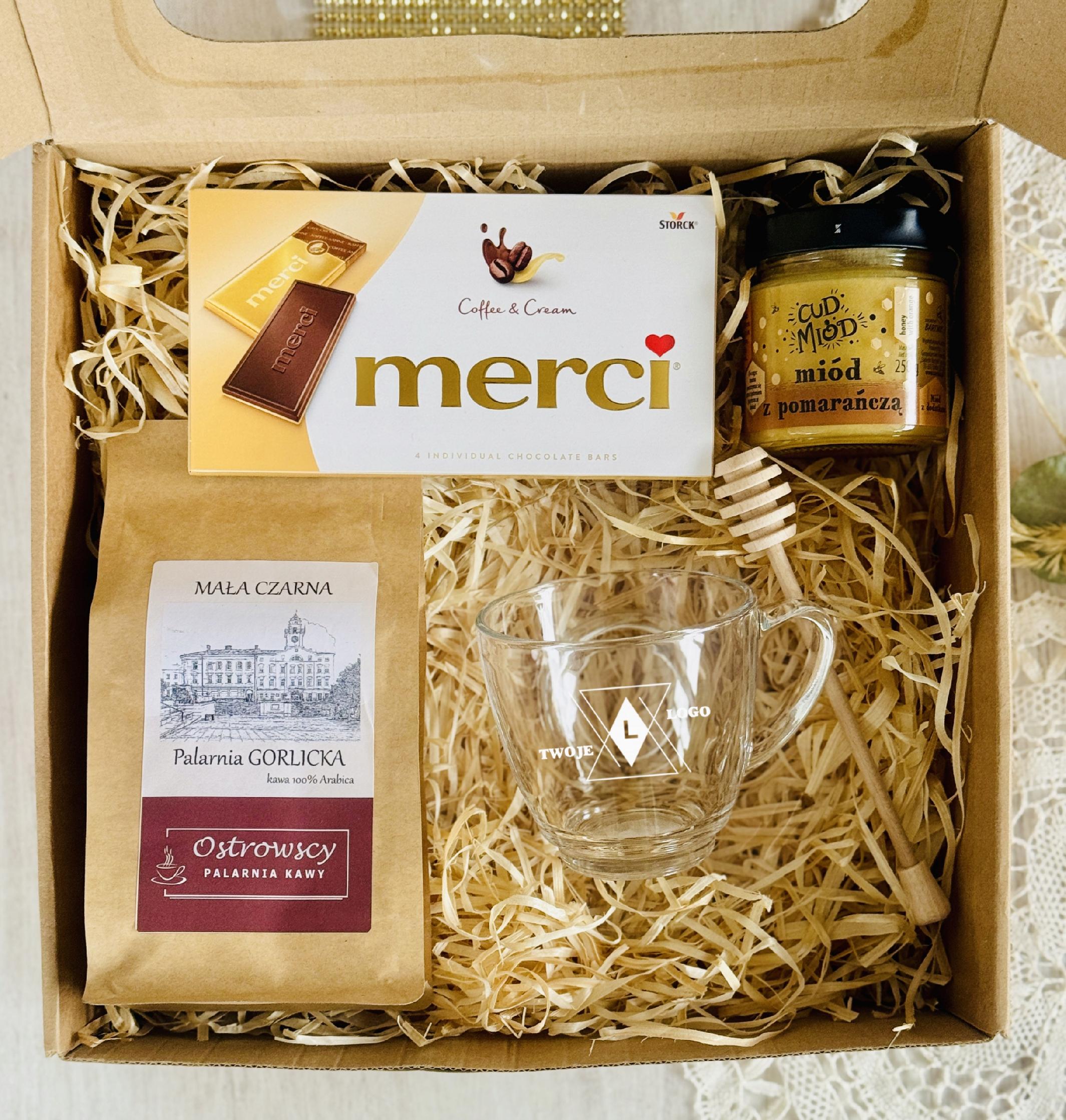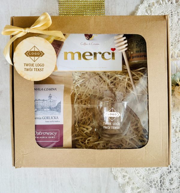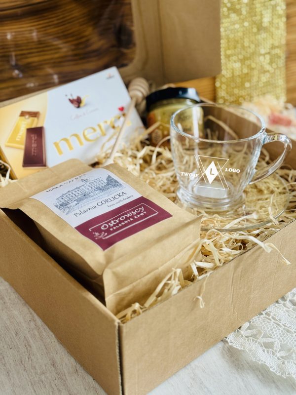 Ten elegancki zestaw to połączenie smaku, relaksu i codziennej przyjemności. Filiżanka z logo firmy staje się praktycznym gadżetem używanym każdego dnia, dzięki czemu marka pozostaje w zasięgu wzroku. Aromatyczna kawa, słodka czekolada i naturalny miód tworzą zestaw, który kojarzy się z chwilą odpoczynku, komfortem i dbałością o detale.