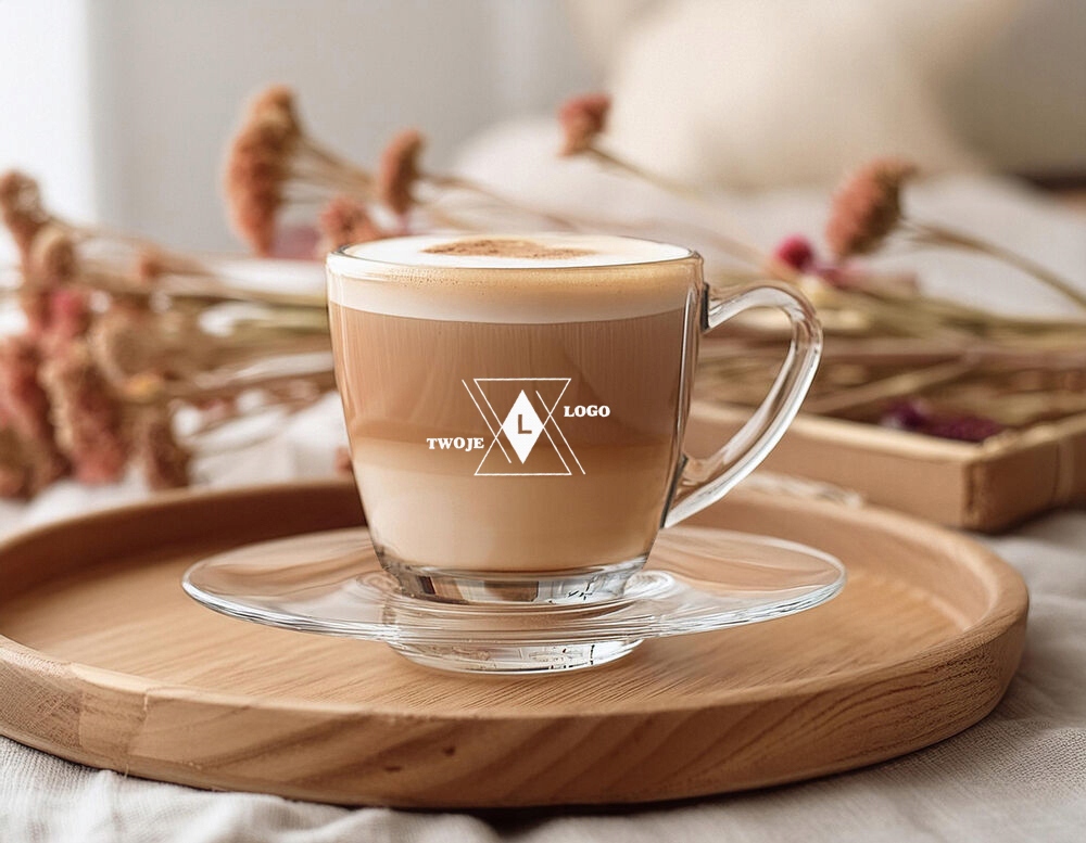 Wysokiej jakości grawer z logo Twojej firmy nadaje mu indywidualny charakter i sprawia, że jest świetnym narzędziem promocyjnym. Unikalny design filiżanki wyróżnia się szkłem o dużej grubości, co nadaje jej nowoczesności i ekskluzywnego wyglądu. Wszystkie pozostałe elementy zestawu są do wykorzystania!