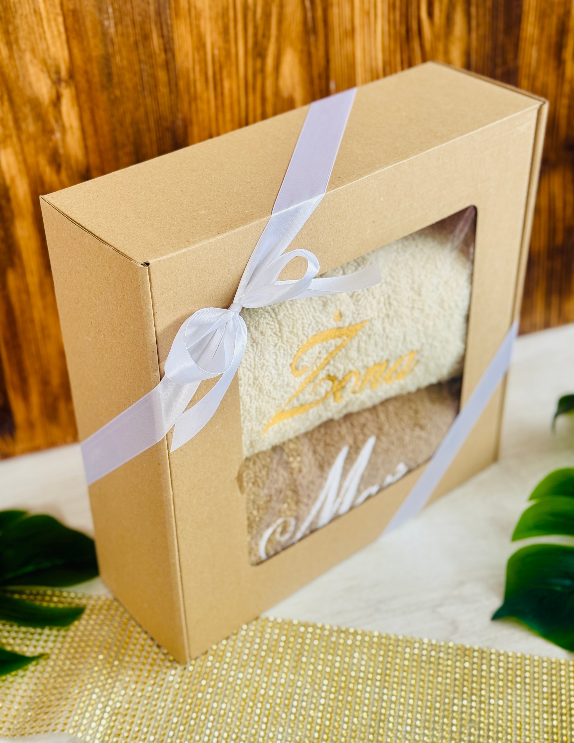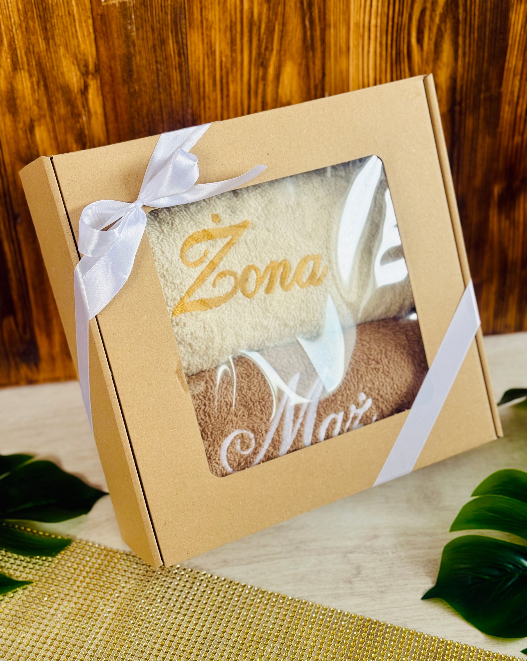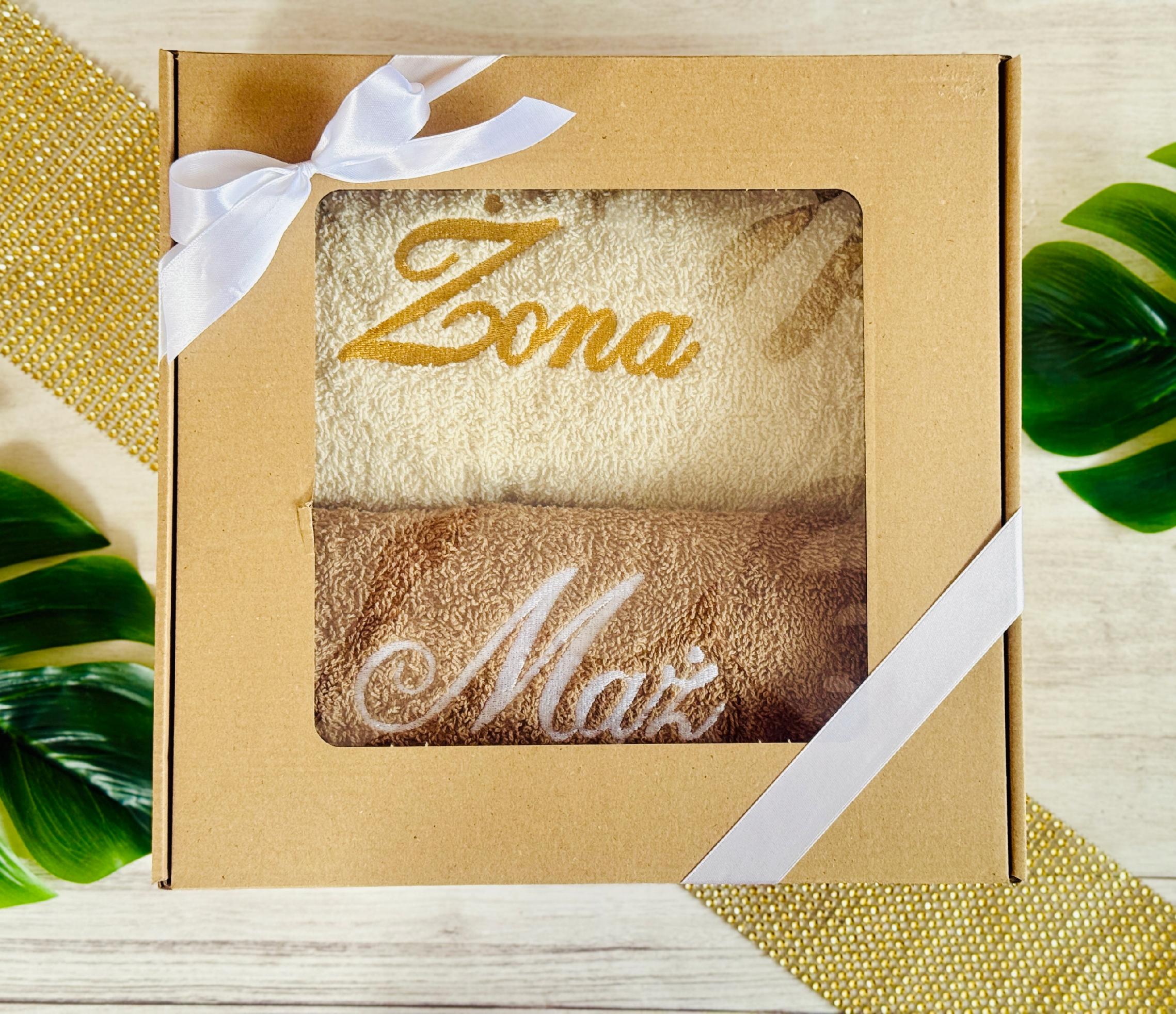 Mięciutki ręcznik dedykowany dla nowożeńców ze specjalnym haftowanym napisem “Żona” i “Mąż” to oryginalny pomysł nie tylko na praktyczny upominek, ale także na osobisty przekaz zawarty w prostym hafcie.
