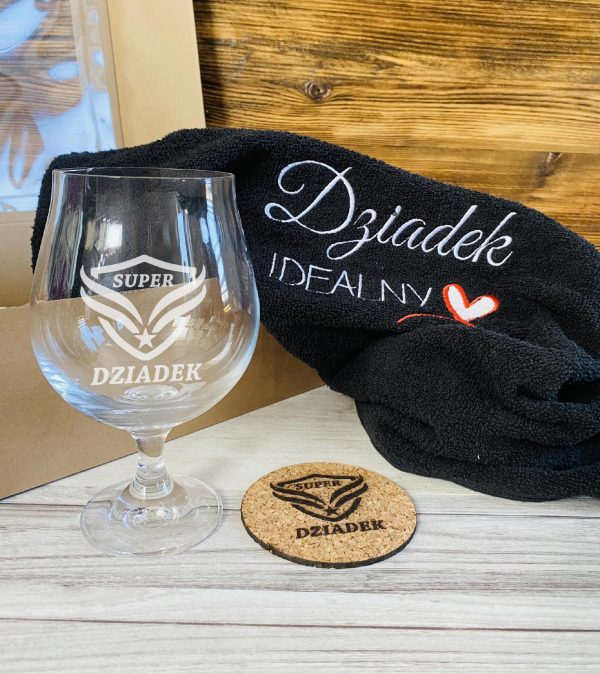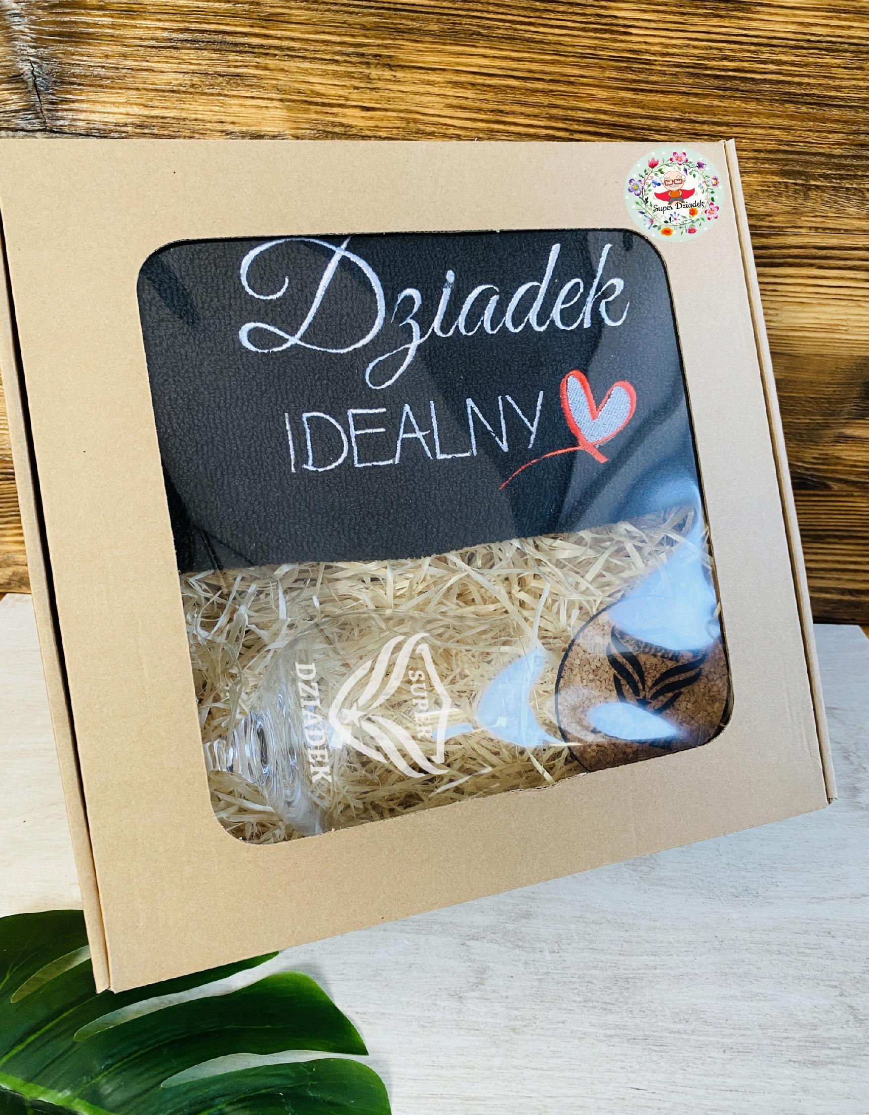 Mięciutki ręcznik dla DZIADKA ze specjalną haftowaną dedykacją “Dziadek idealny” i delikatną grafiką w kształcie serca to oryginalny pomysł nie tylko na praktyczny upominek, ale także na osobisty przekaz zawarty w prostym hafcie. ZESTAW poszerzony o kufel – pokal, z grawerem i podkładkę do kompletu, w całości zapakowany w pudełko z naklejką tworzy zestaw gotowy do wręczenia.