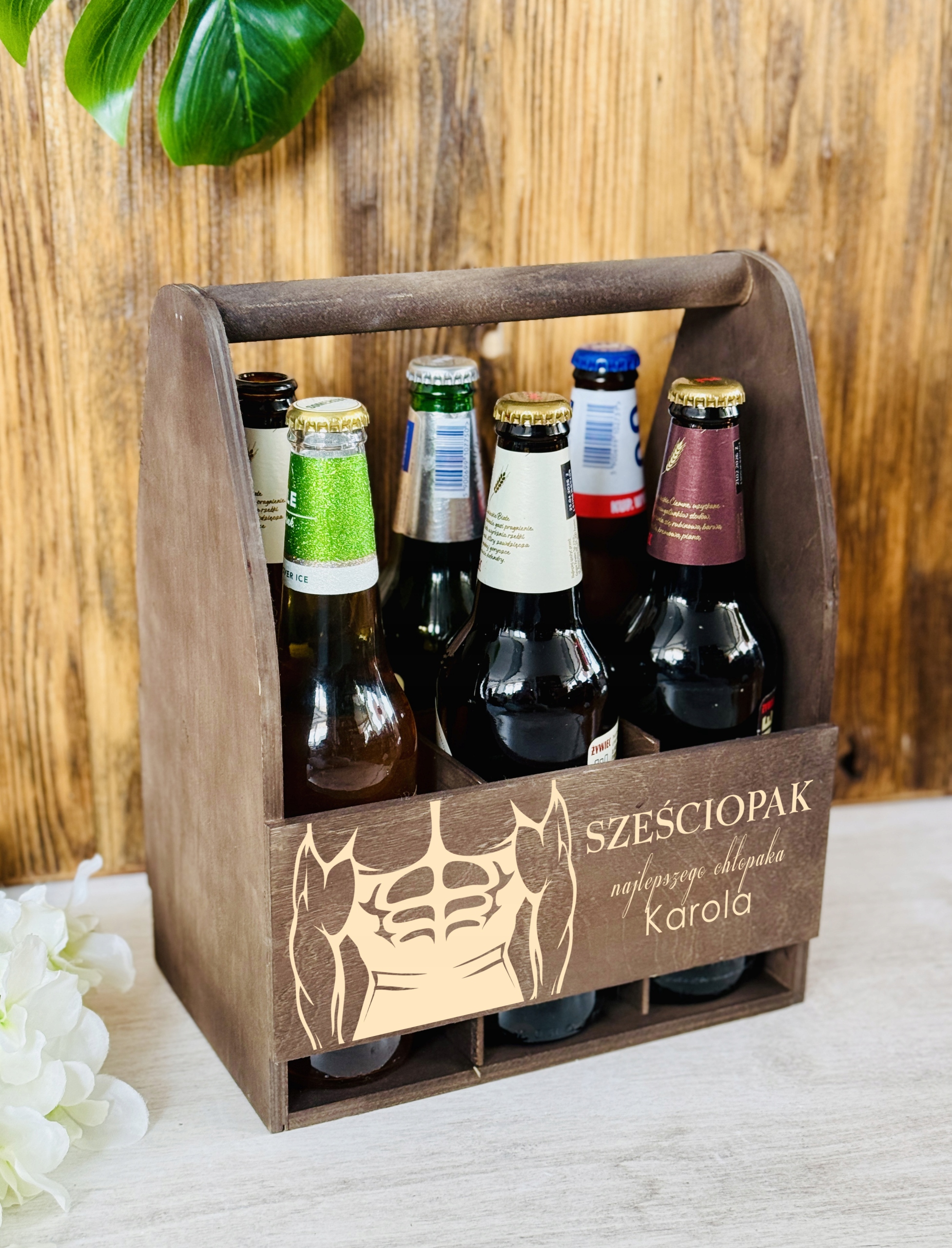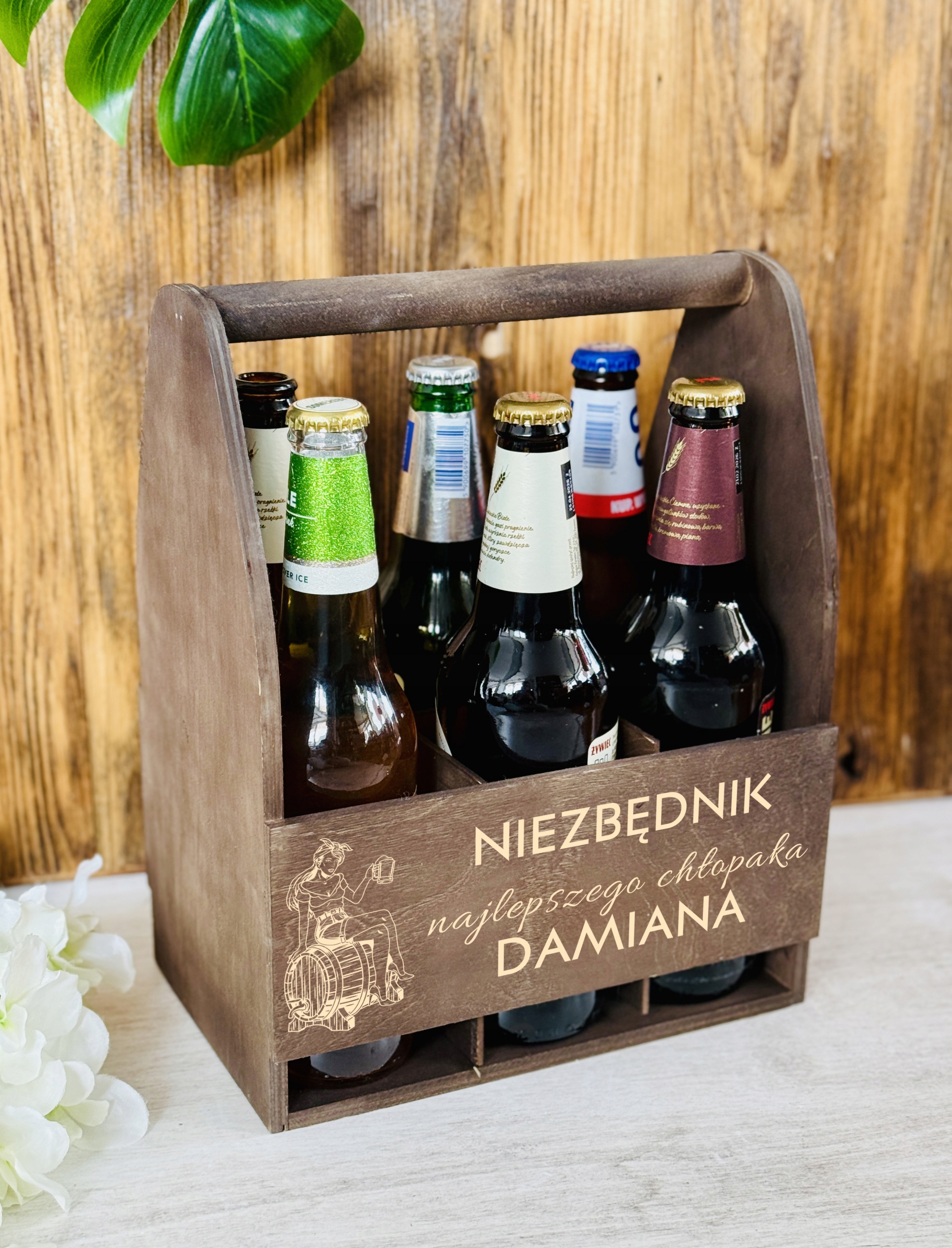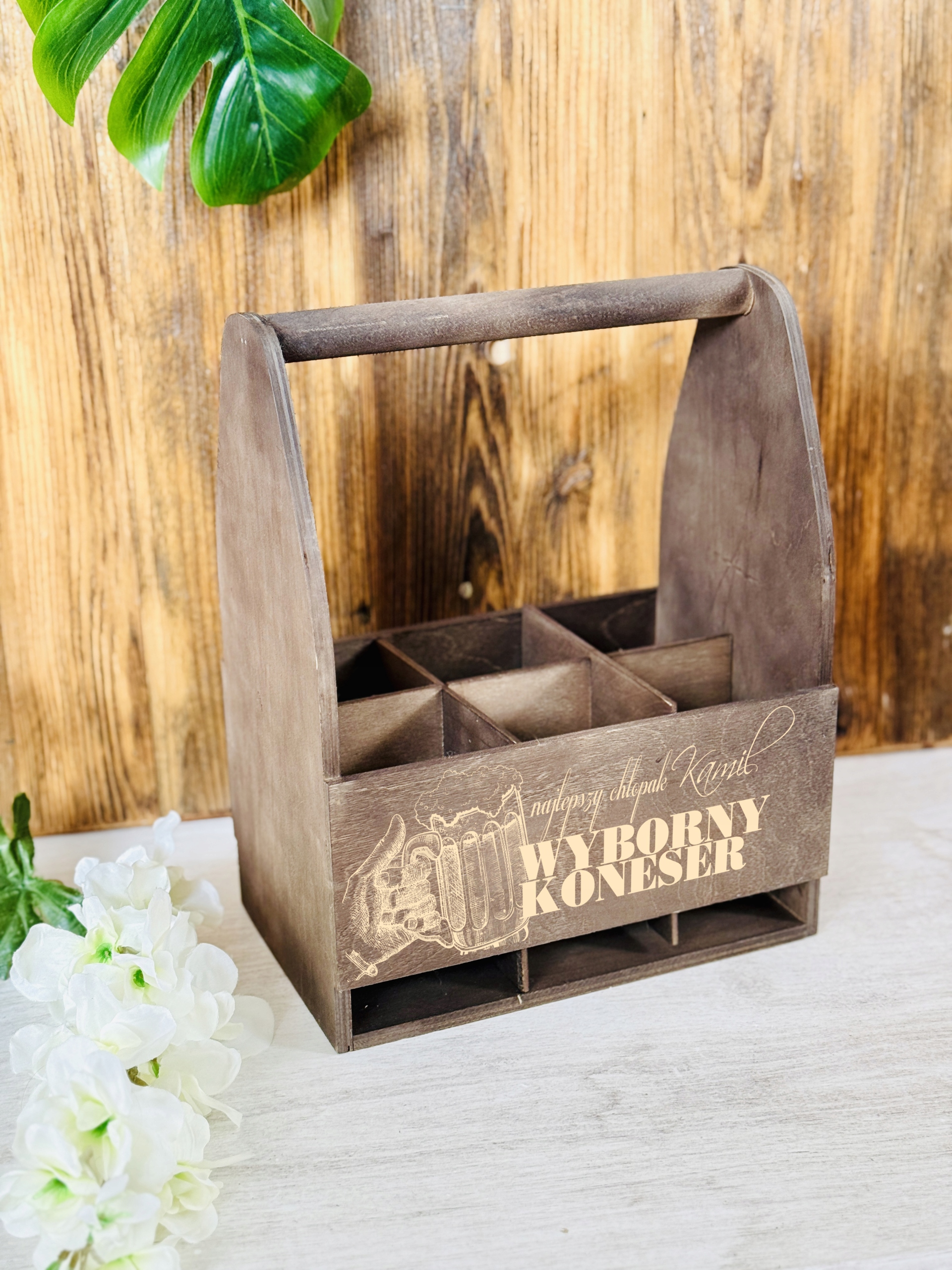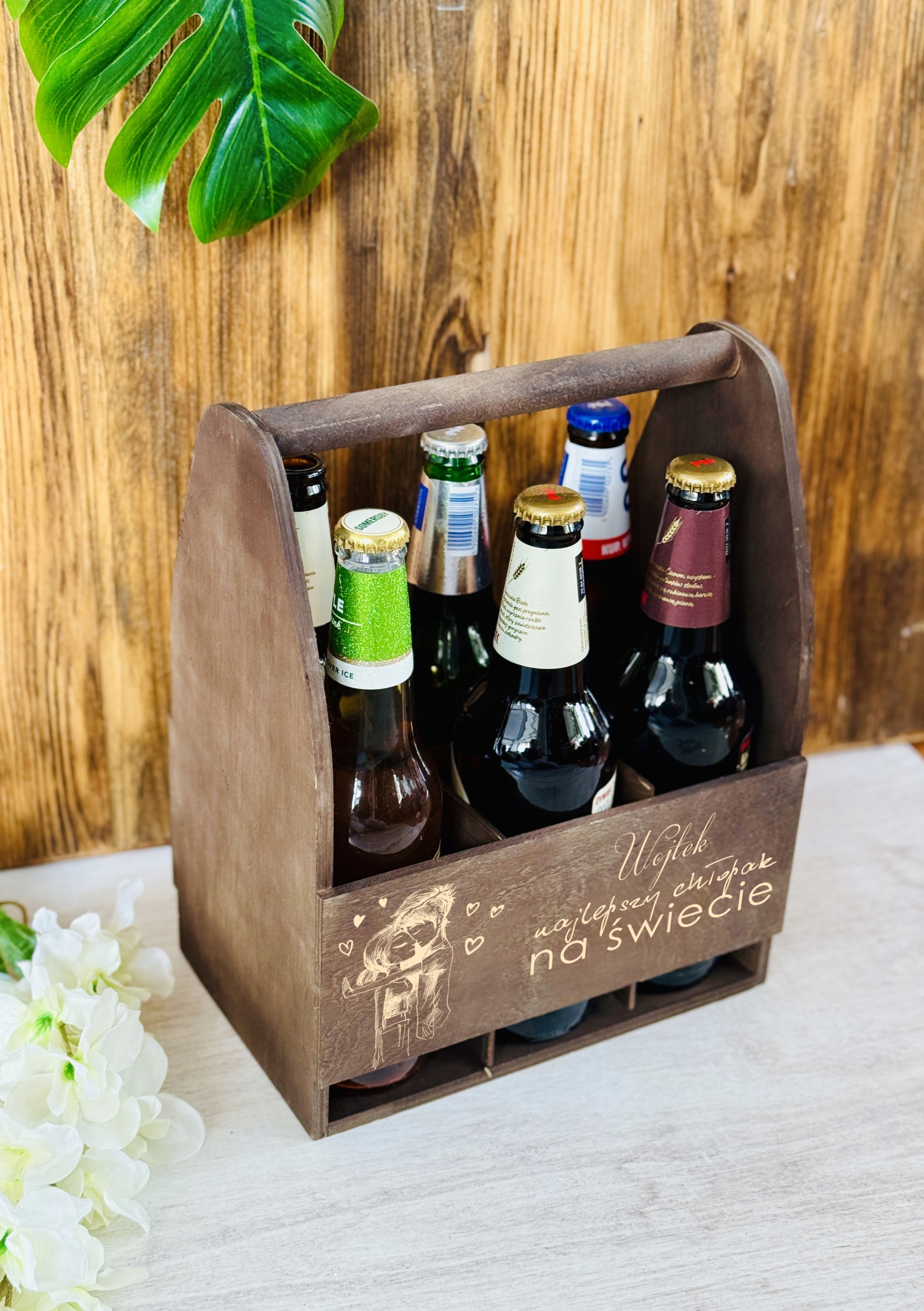 Nasza skrzynka to prezent, który na pewno będzie doceniony. Wykonany na specjalne zamówienie, z personalizacją. Możliwość zamieszczenia imienia osoby obdarowanej sprawi, że prezent będzie oryginalny i niezapomniany. Bejcowane zmienia kolor drewna na ciemny brąz, zachowując przy tym jego naturalny rysunek. Dodatkowo w zestawie znajduje się kufel, również z grawerem w specjalnym pudełku prezentowym!