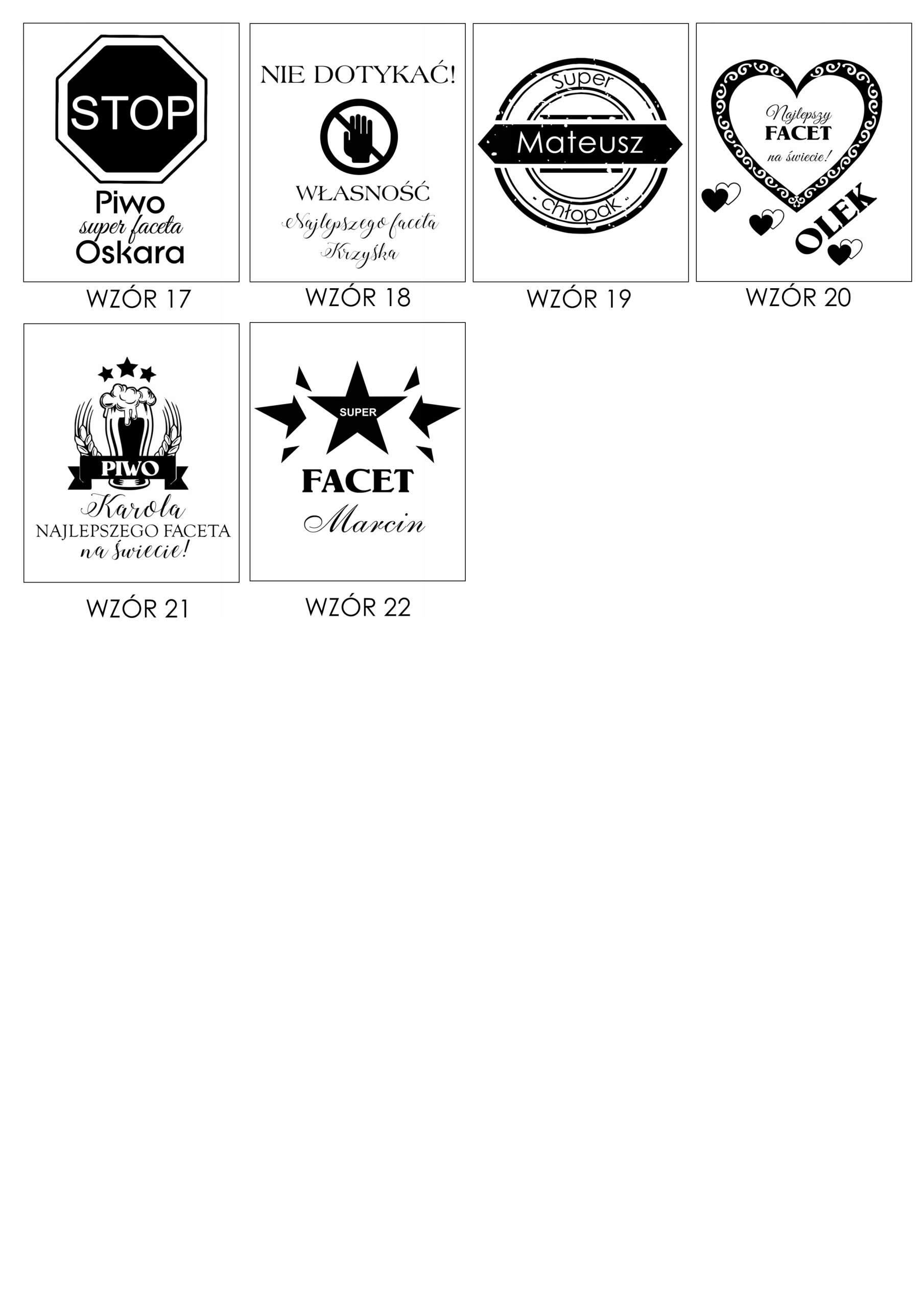 - do wyboru wzory przedstawione poniżej + Imię (należy podać w uwagach do sprzedającego)