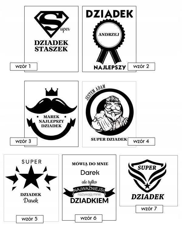 z grawerem: grawer wykonany bezpośrednio na podkładce: do wyboru wzory przedstawione poniżej (należy podać w uwagach do sprzedającego nr wzoru)