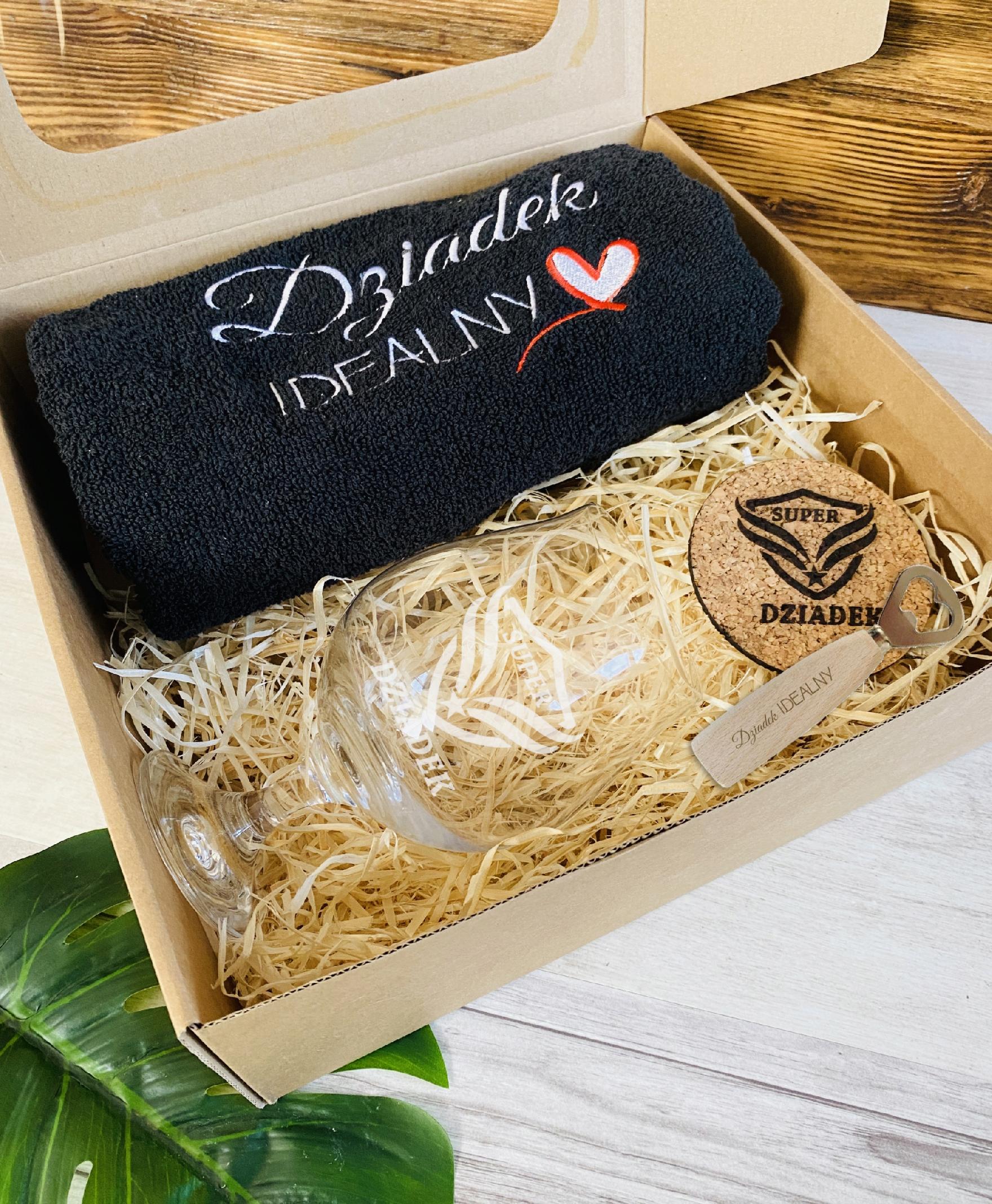 Mięciutki ręcznik dla DZIADKA ze specjalną haftowaną dedykacją “Dziadek idealny” i delikatną grafiką w kształcie serca to oryginalny pomysł nie tylko na praktyczny upominek, ale także na osobisty przekaz zawarty w prostym hafcie. ZESTAW poszerzony o kufel – pokal, podkładkę z otwieraczem o butelek do kompletu, w całości zapakowany w pudełko z naklejką tworzy zestaw gotowy do wręczenia.