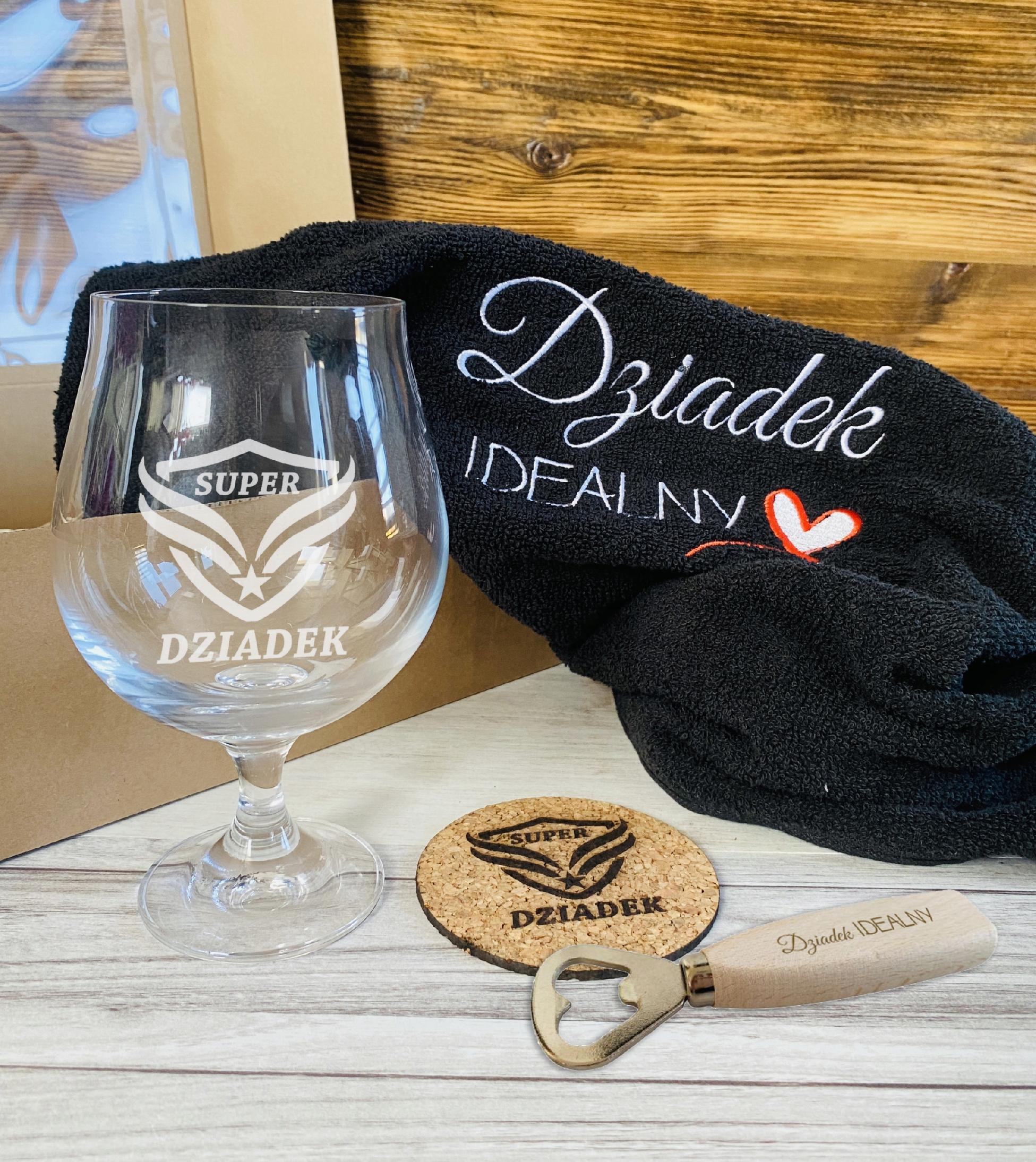 PREZENT UPOMINEK na DZIEŃ DZIADKA ręcznik kufel pokal podkładka otwieracz