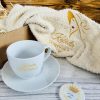 • Wysokiej jakości filiżanka –  biała z nadrukiem.