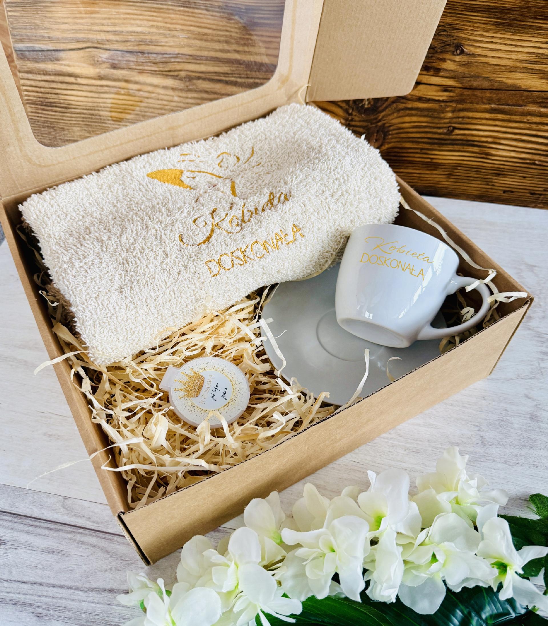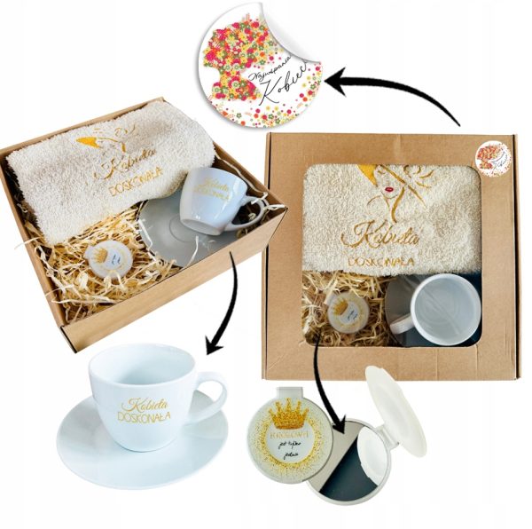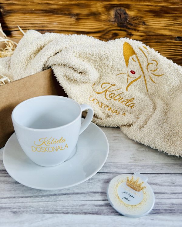 Mięciutki ręcznik dedykowany dla kobiet ze specjalną haftowaną dedykacją “Kobieta doskonała” i delikatną grafiką z postacią to oryginalny pomysł nie tylko na praktyczny upominek, ale także na osobisty przekaz zawarty w prostym hafcie. ZESTAW poszerzony o filiżankę do kompletu i lusterko, w całości zapakowany w pudełko z naklejką tworzy prezent gotowy do wręczenia.