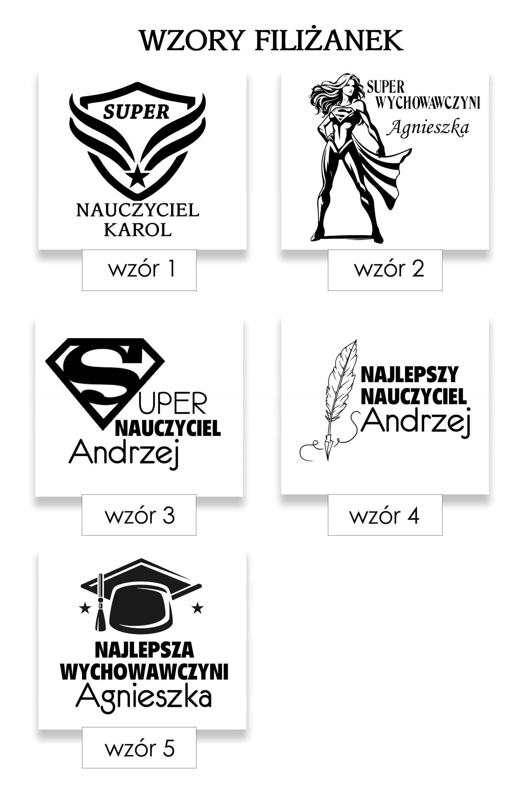 – wybrany wzór na filiżankę wraz z danymi do nadruku,