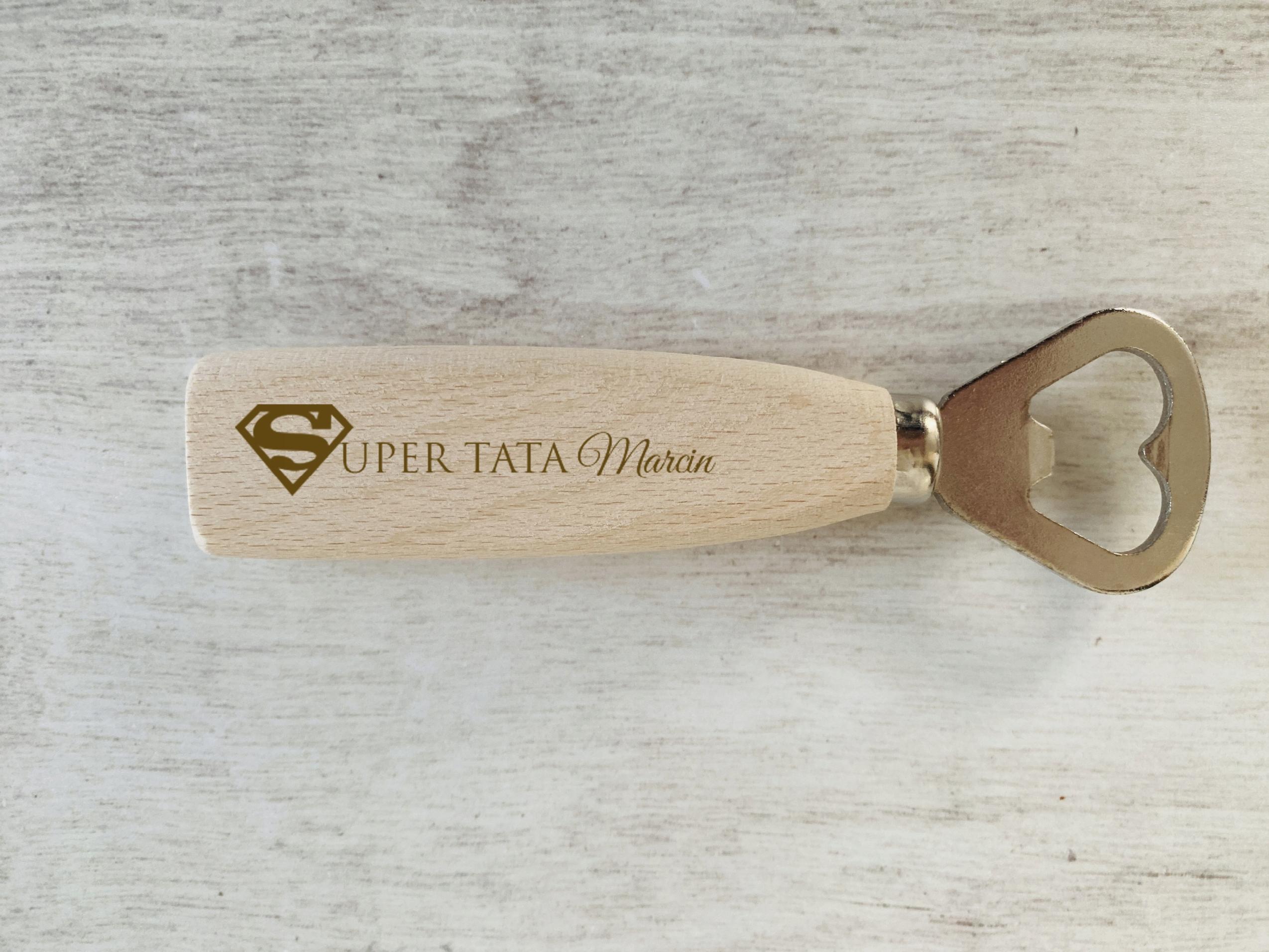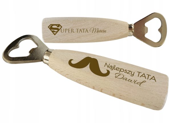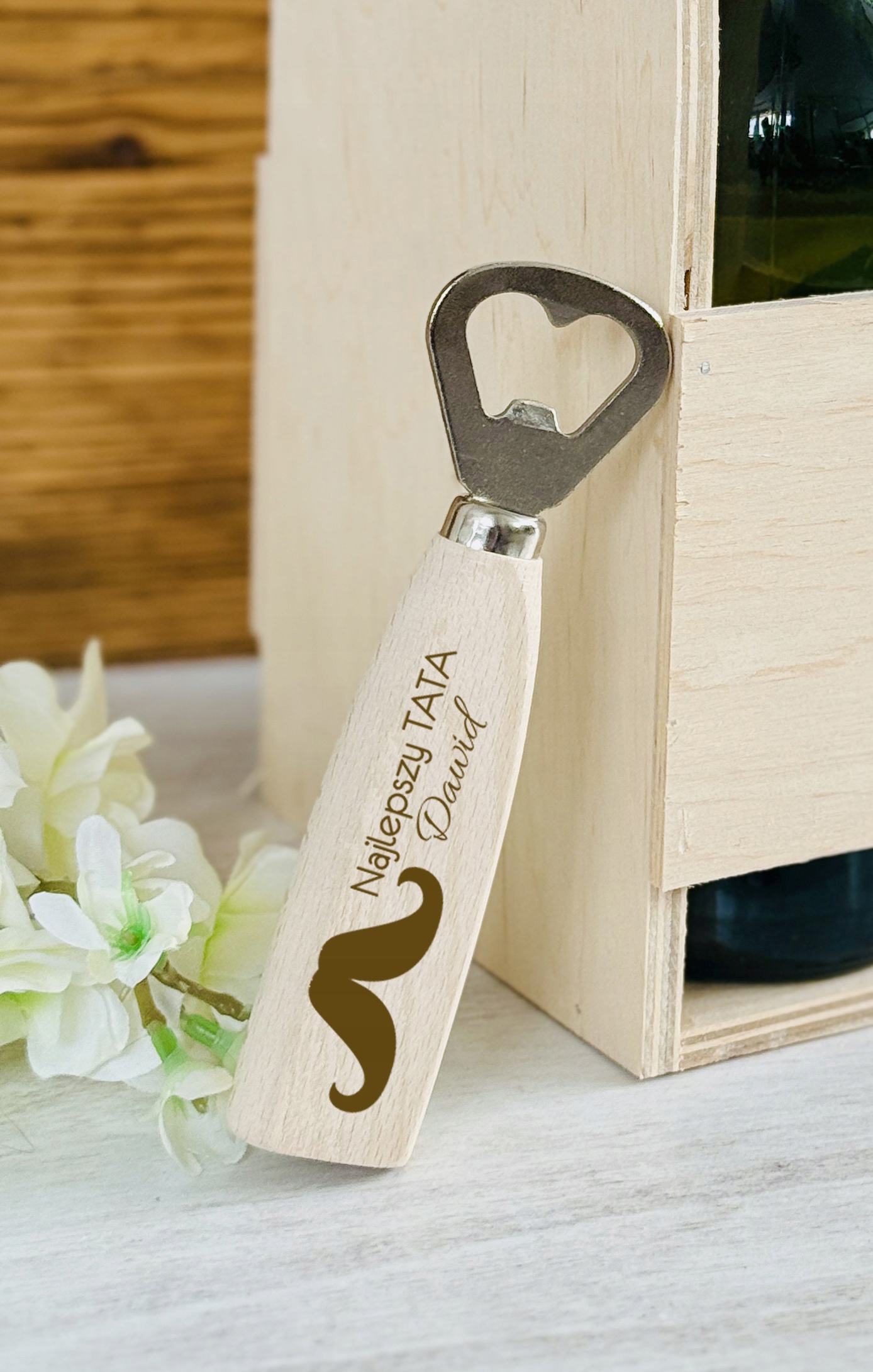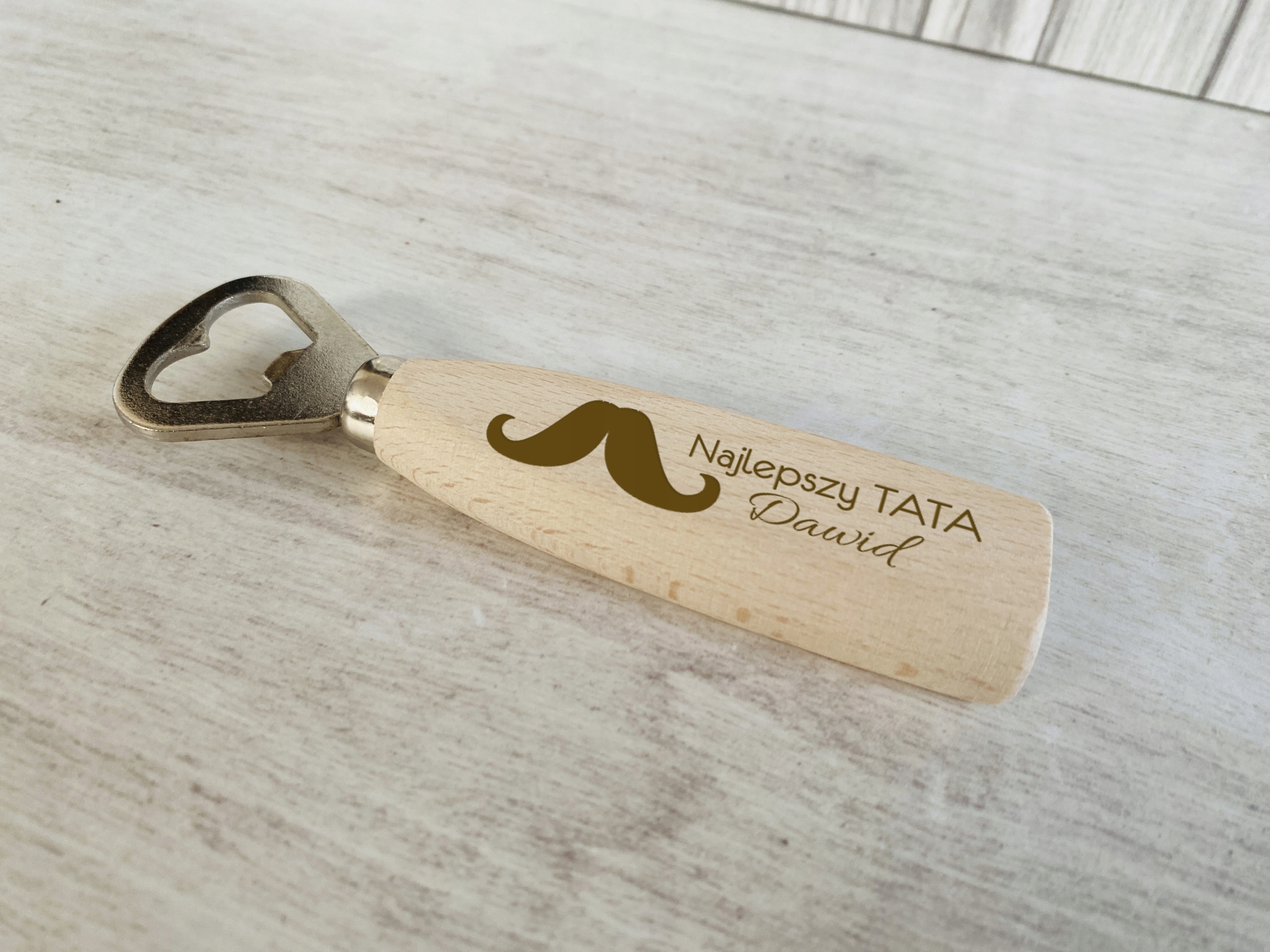 - Wysokiej jakości drewniany otwieracz z laserowym grawerem.