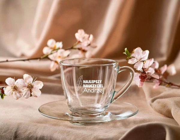1. wybrany wzór na filiżanę wraz z tekstem i imieniem