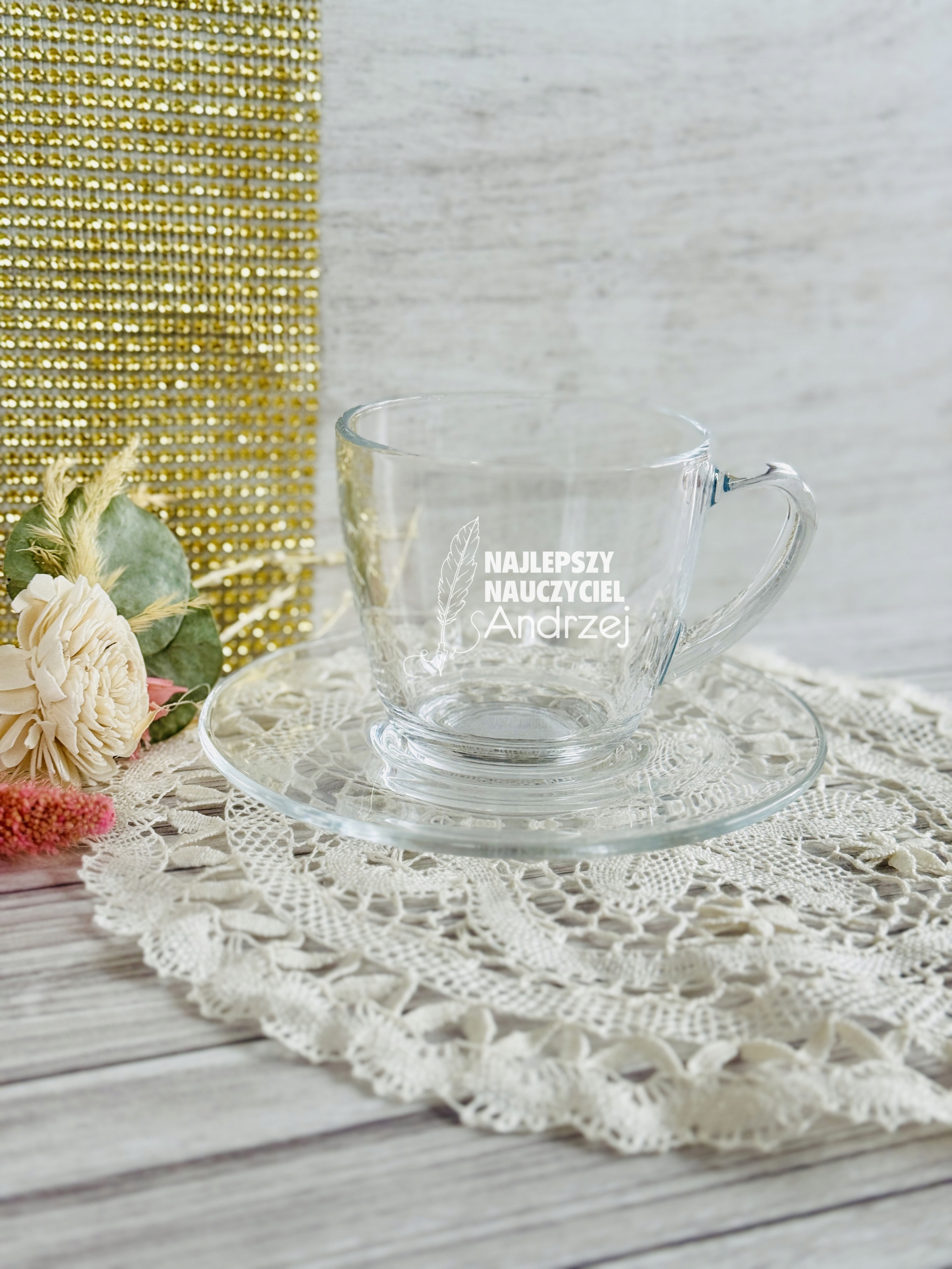 ✅Wysokiej jakości szklana filiżanka z laserowym grawerem. Grawer wykonany na najwyższej jakości urządzeniach. Grawer jest wyczuwalny pod ręką, delikatnie zagłębiony. Jest to wspaniała alternatywa dla typowych podarków.  Nigdy nie zetrze się, będzie wspaniałą pamiątką na lata.
