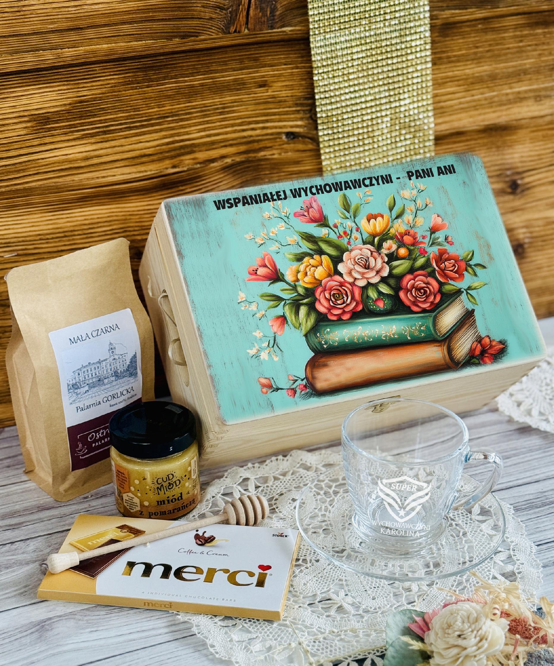 Nasz ZESTAW – to wyjątkowy upominek, który w piękny i elegancki sposób wyrazi wdzięczność za trud, serce i poświęcenie włożone w edukację.