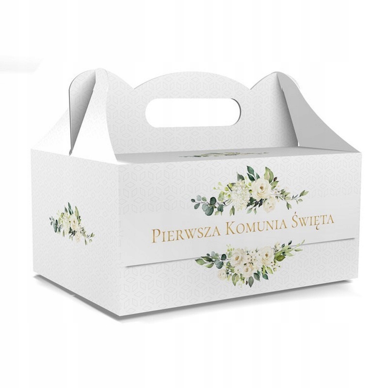 • skład: pudełka na ciasto komunijne z rączką Pierwsza Komunia Majowe Kwiaty (10szt)