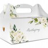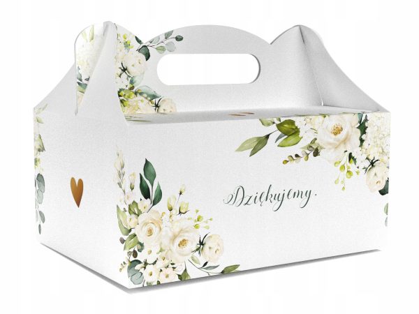 Białe pudełka na ciasto z nadrukiem zielono-złotym dedykowanym na Chrzest Święty. Super łatwe składanie. Elegancka, wygodna i wytrzymała rączka. Trwały karton o podwyższonej odporności na wilgoć. Łatwo składające się dno. Częściowo złożone pudełka, bez wpiętej rączki można układać jedno na drugim co zaoszczędzi miejsce np. w lodówce lub na czas transportu.
