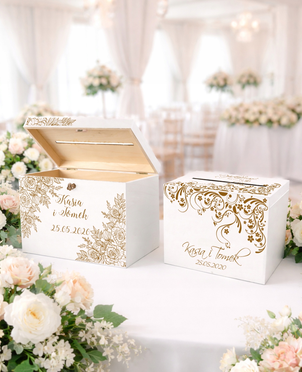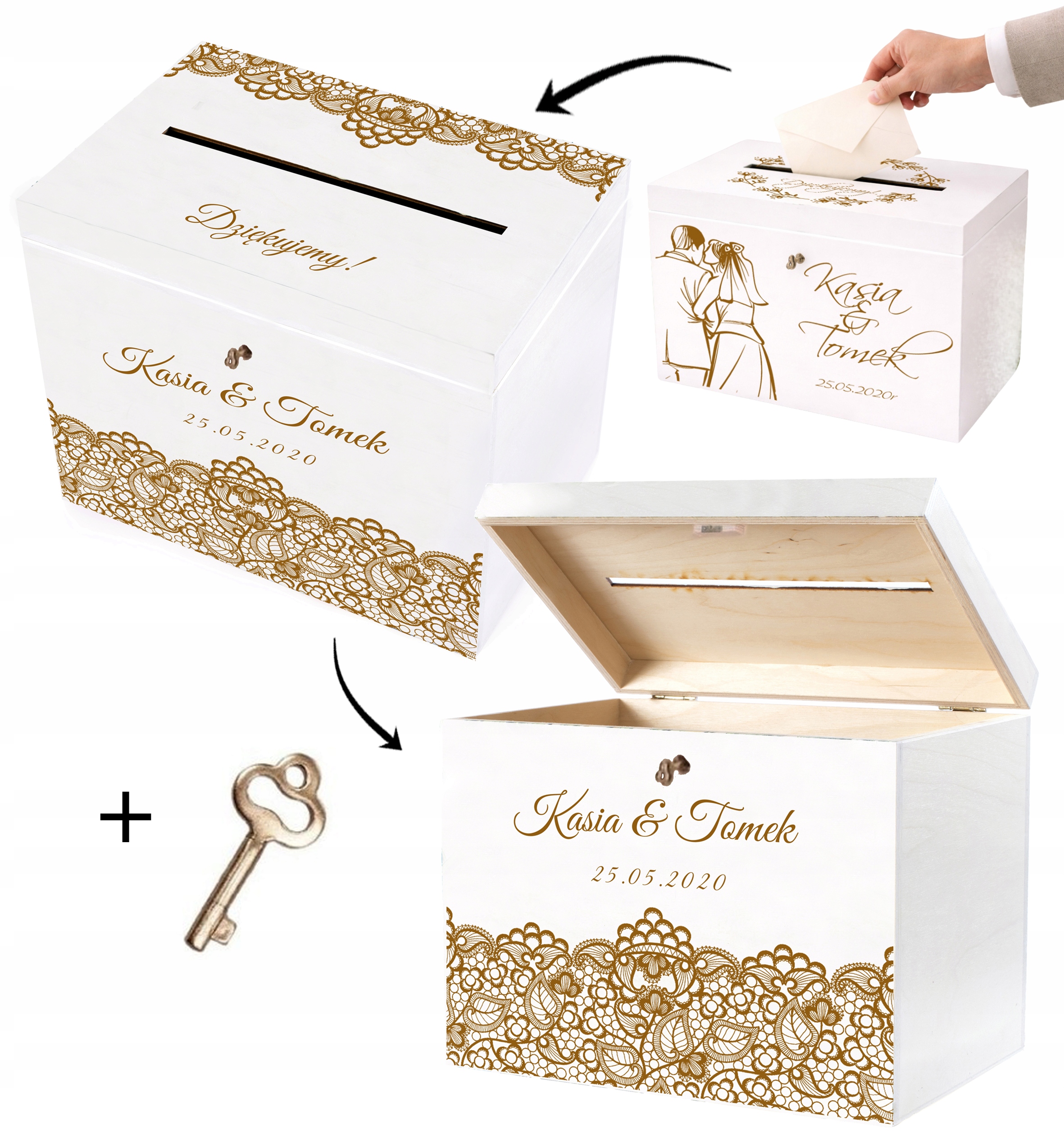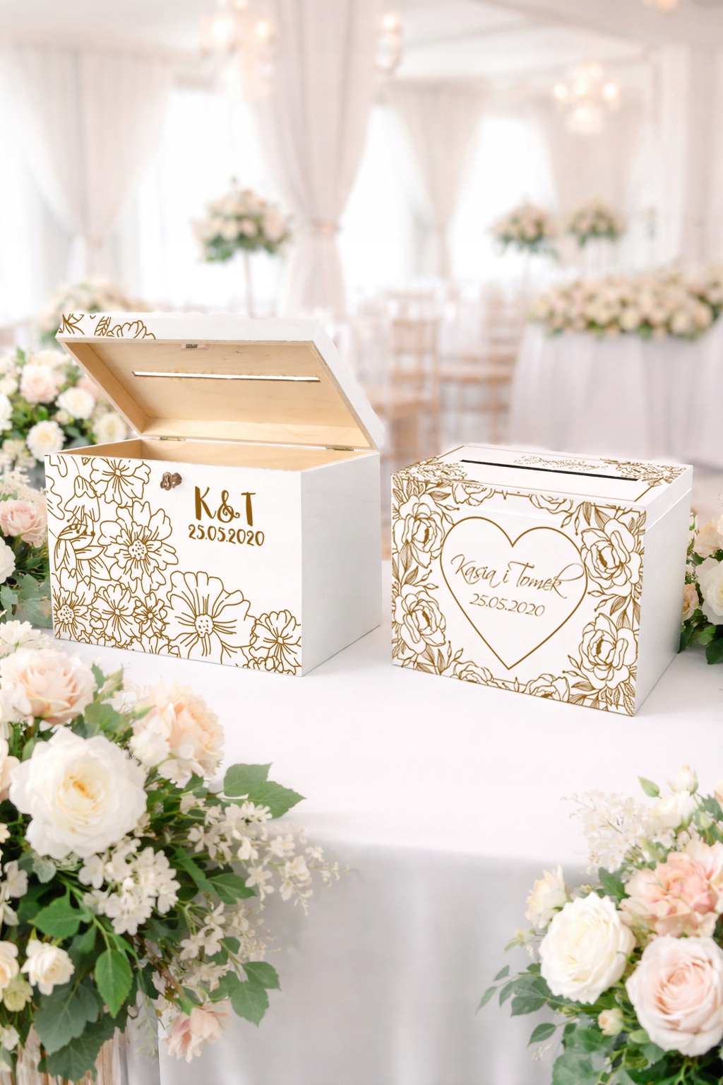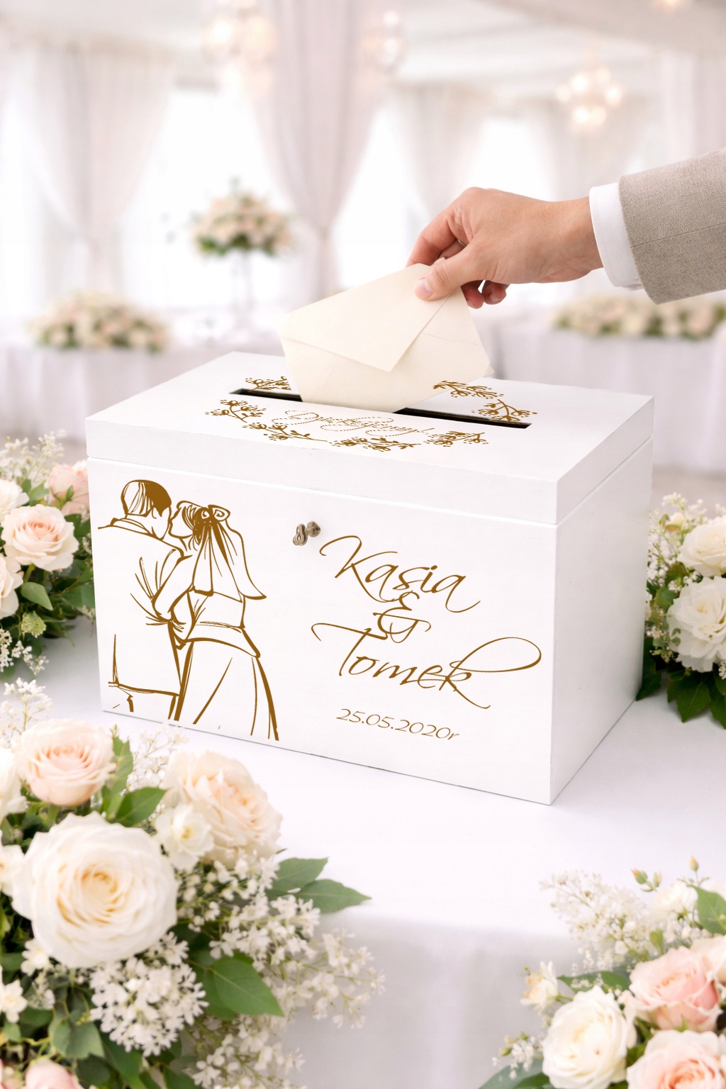 Skrzynka na koperty to nie tylko praktyczny element przyjęcia weselnego, ale również stylowa dekoracja, która idealnie wkomponuje się w aranżację sali. Umożliwia gościom wygodne pozostawienie kopert z życzeniami i prezentami, a Młodej Parze – bezpieczne ich przechowywanie.