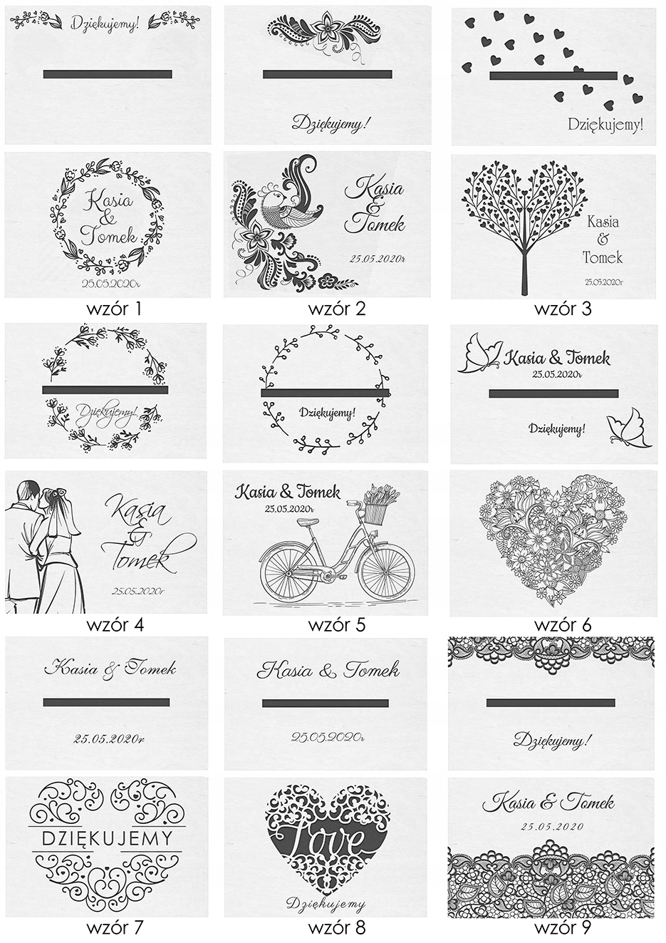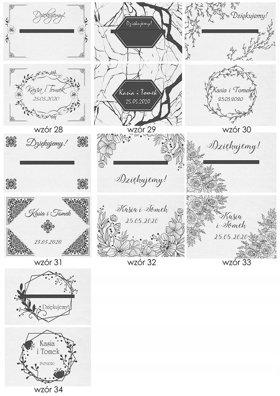 - W wiadomości do sprzedającego podaj numer wzoru jaki wybierasz i prześlij imiona i datę