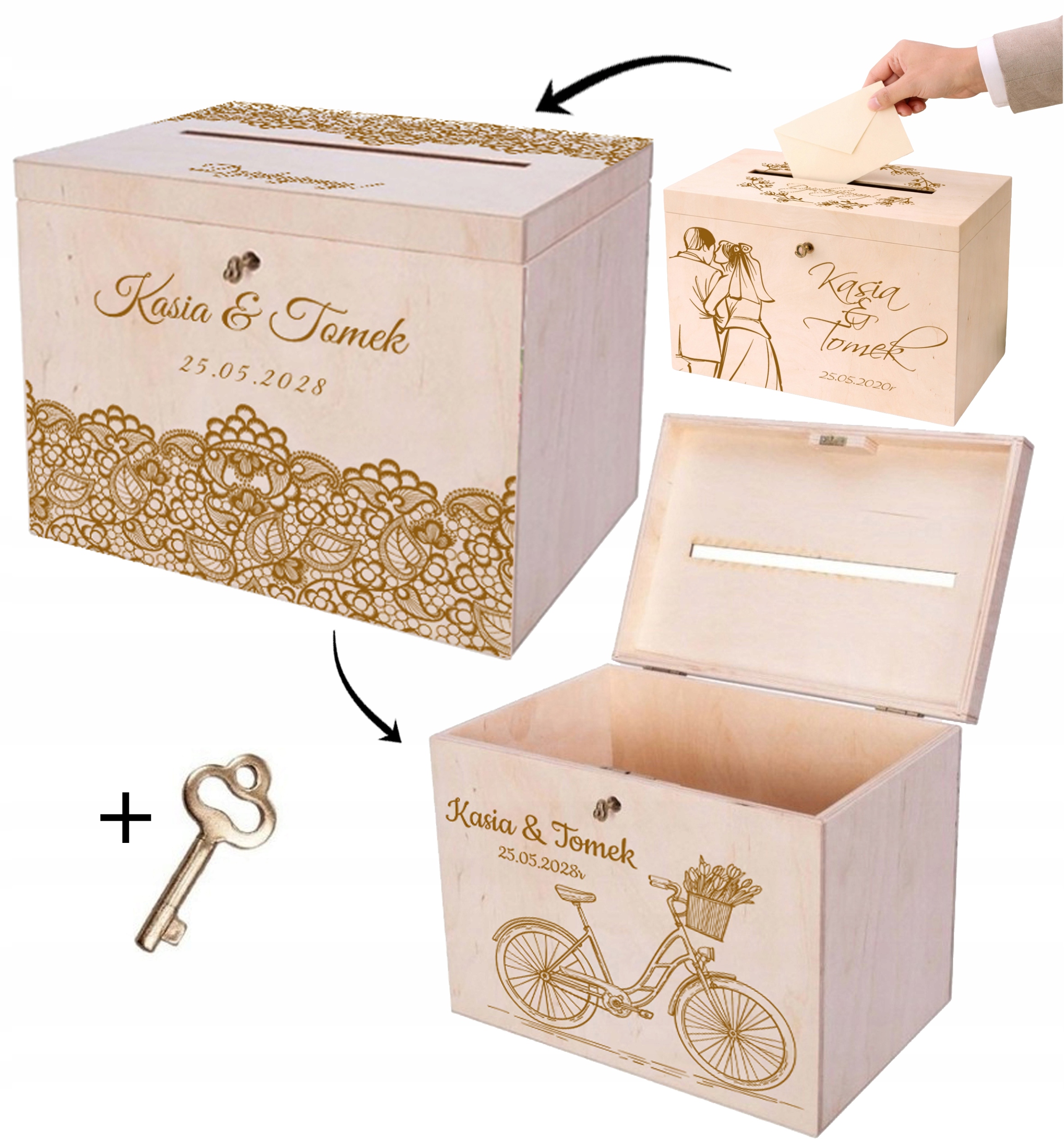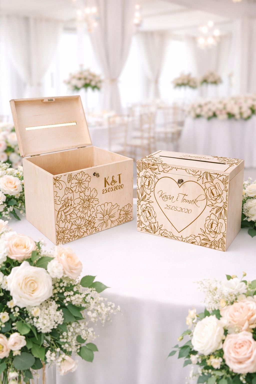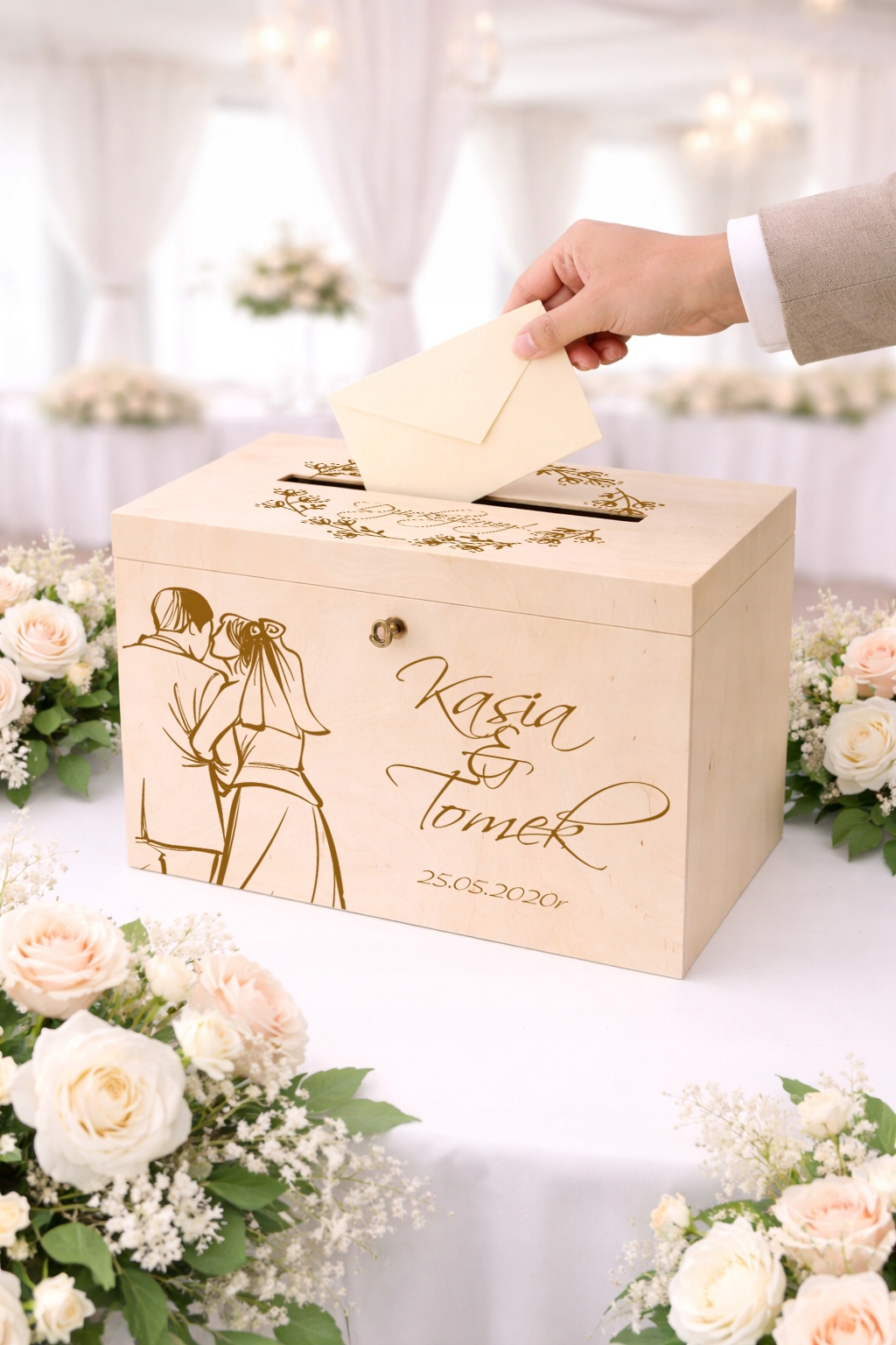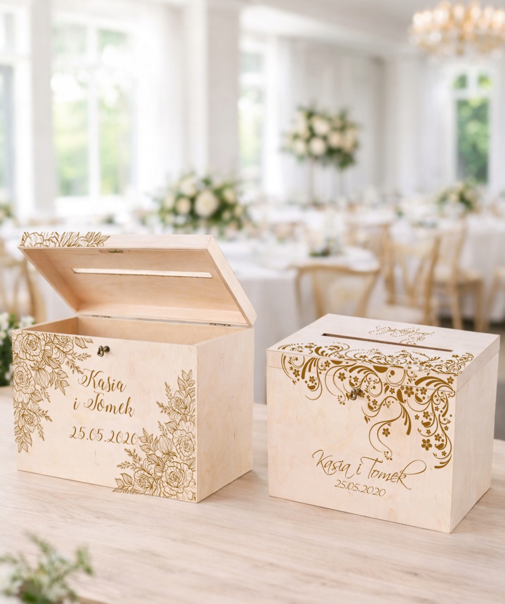Skrzynka na koperty to nie tylko praktyczny element przyjęcia weselnego, ale również stylowa dekoracja, która idealnie wkomponuje się w aranżację sali. Umożliwia gościom wygodne pozostawienie kopert z życzeniami i prezentami, a Młodej Parze – bezpieczne ich przechowywanie.