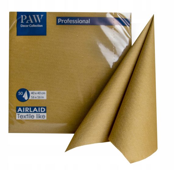 - serwetki flizelinowe w pięknym złotym odcieniu, są impregnowane i sztywne