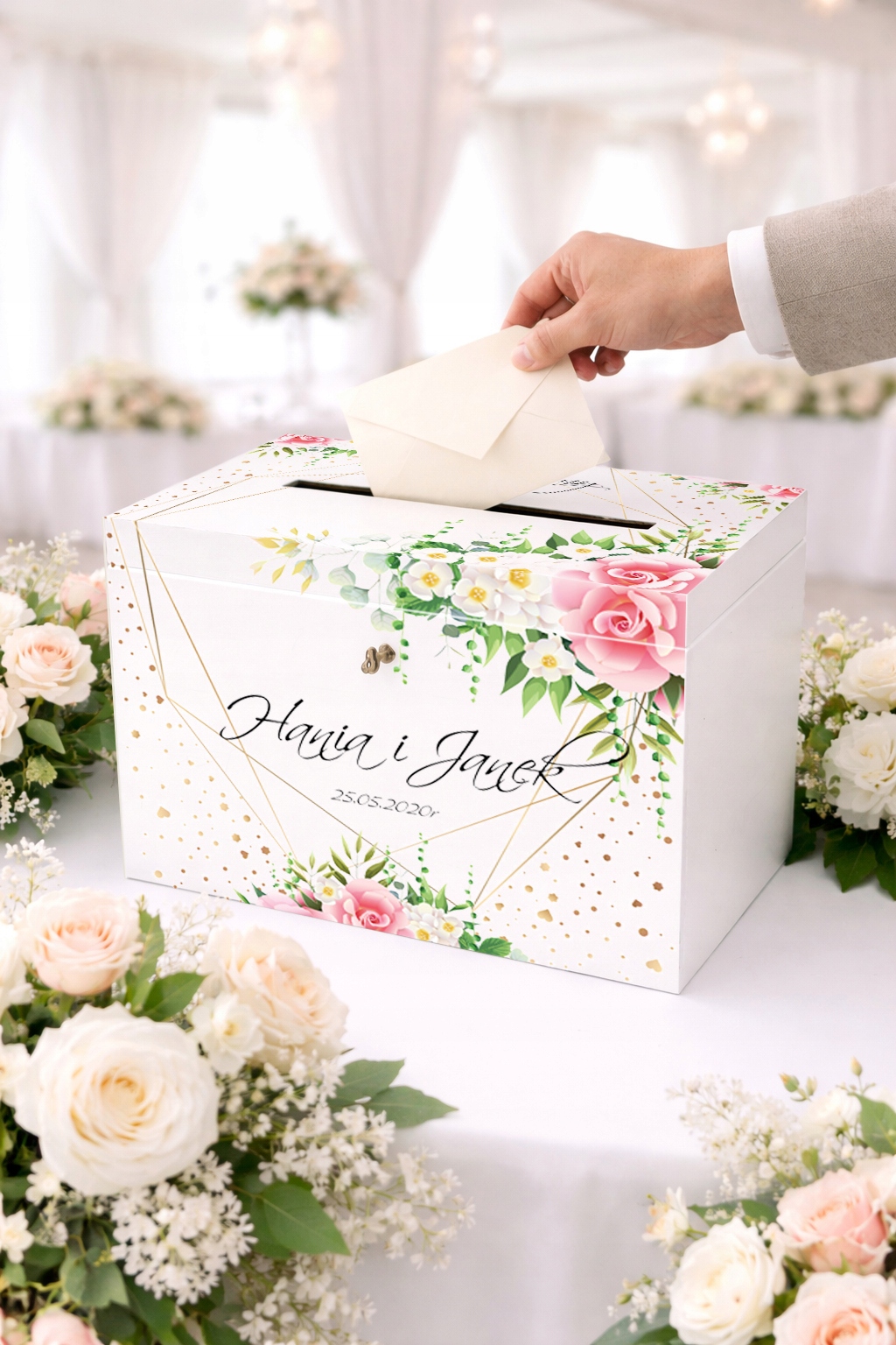 Skrzynka na koperty to nie tylko praktyczny element przyjęcia weselnego, ale również stylowa dekoracja, która idealnie wkomponuje się w aranżację sali. Umożliwia gościom wygodne pozostawienie kopert z życzeniami i prezentami, a Młodej Parze – bezpieczne ich przechowywanie.