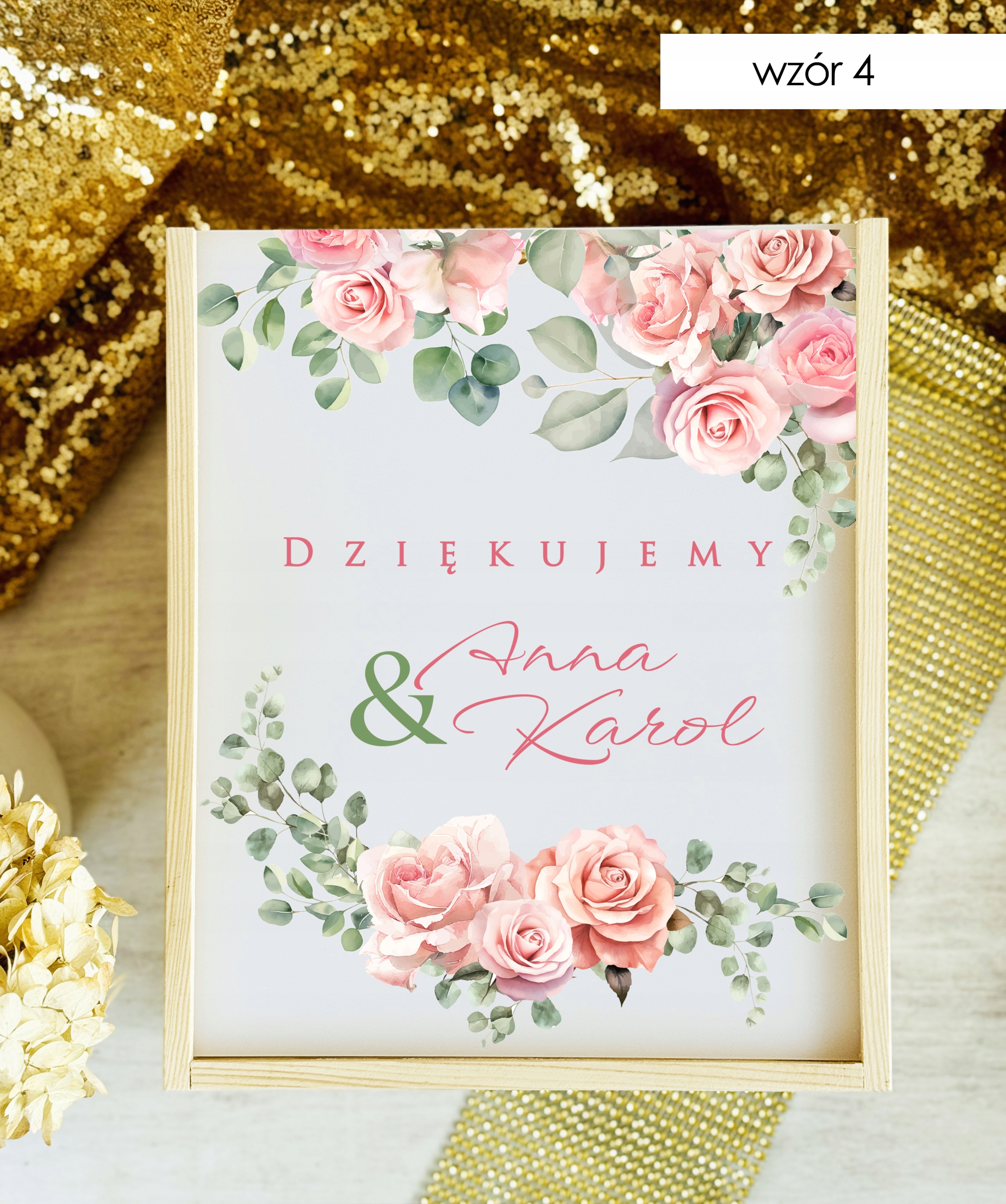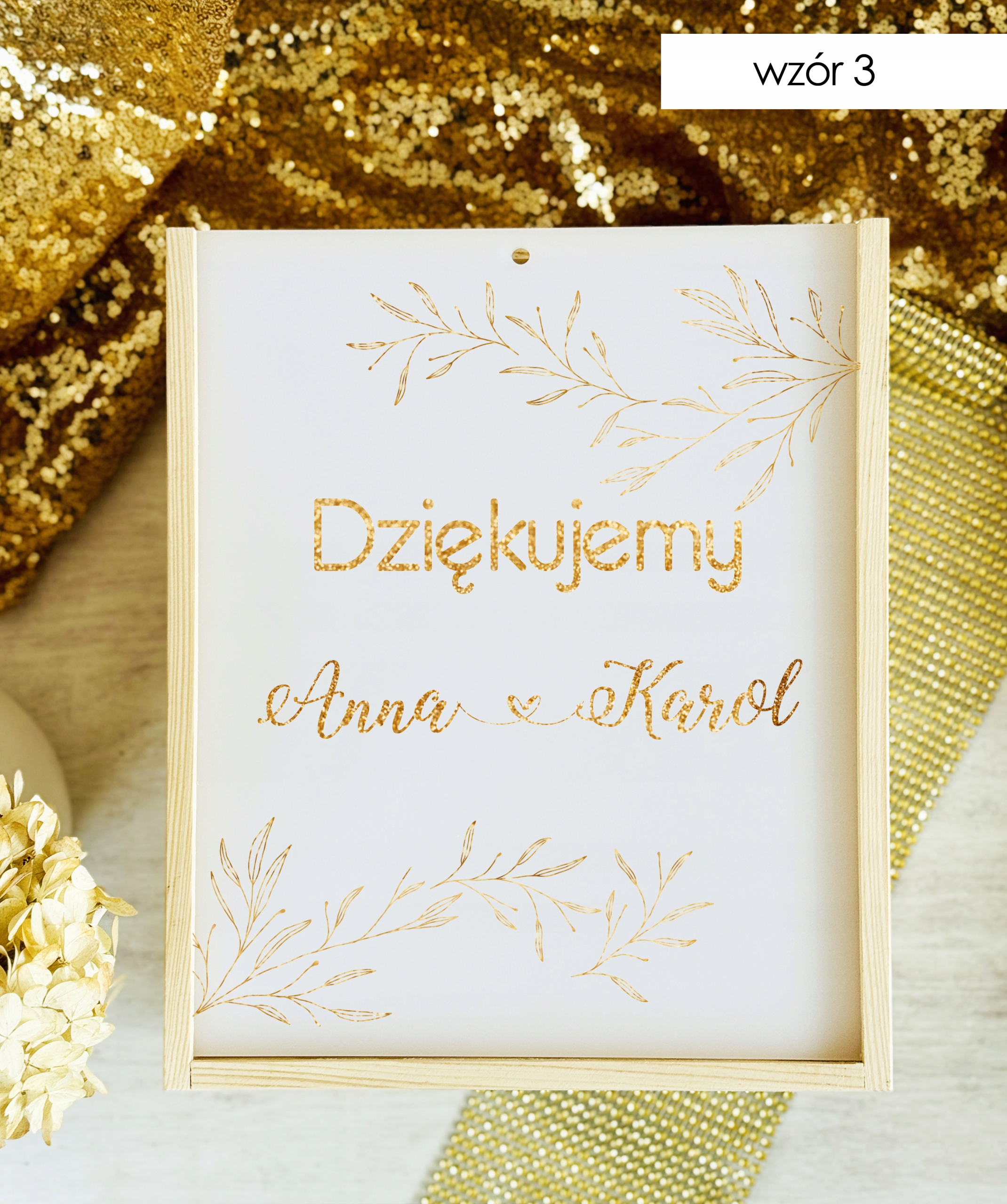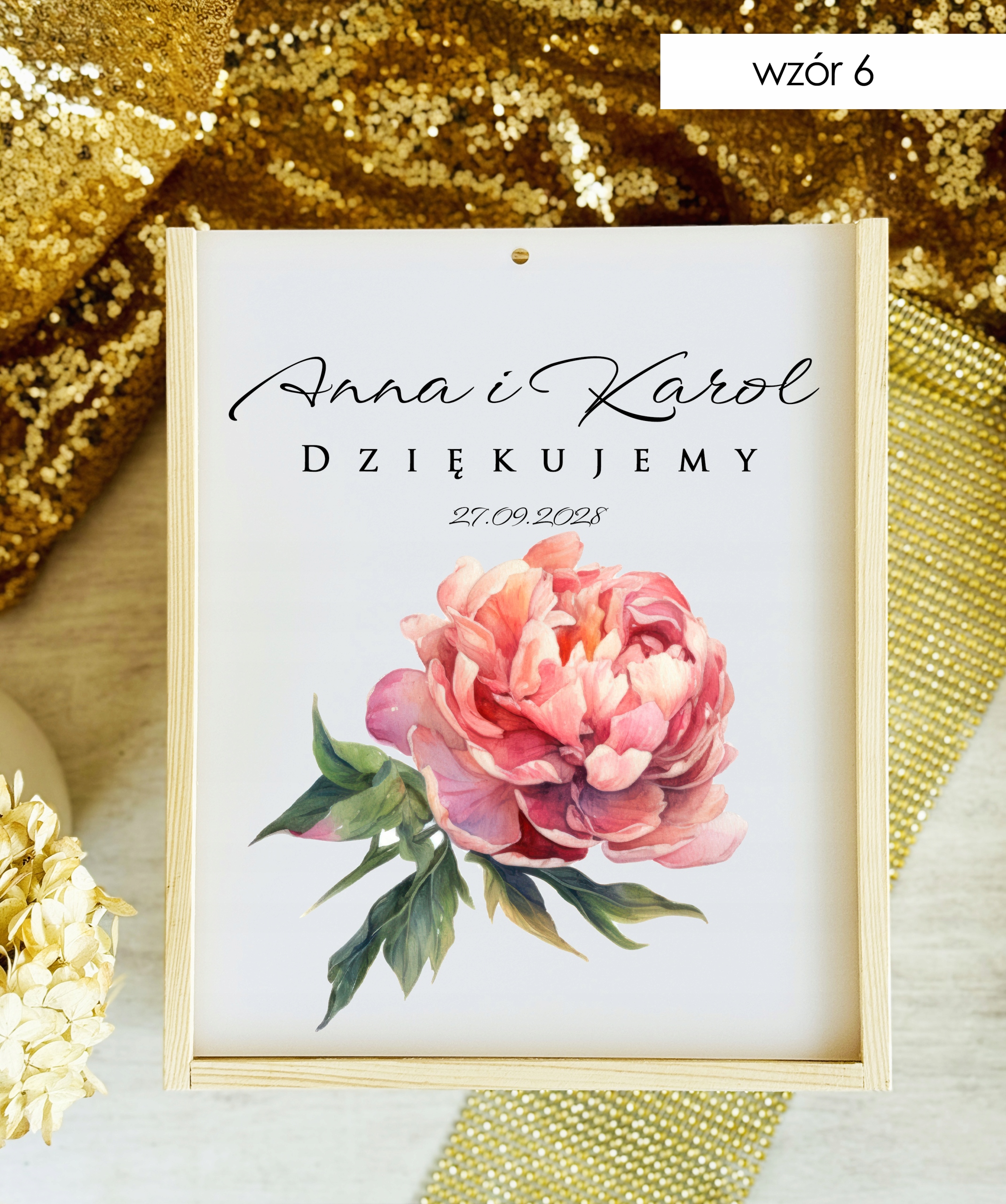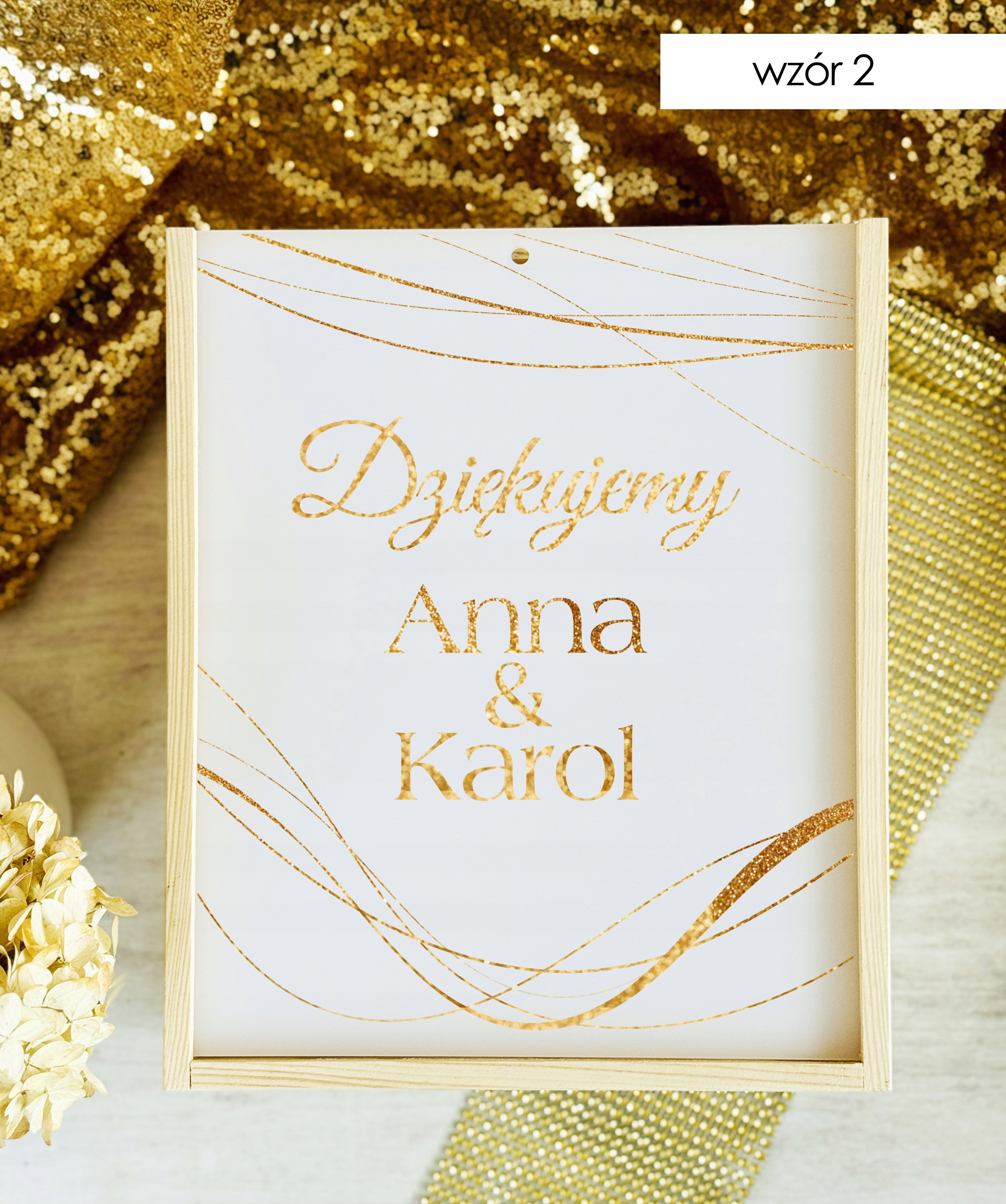 Pudełko posiada wygodny otwór w górnej części, dzięki któremu goście mogą w dyskretny i estetyczny sposób przekazać swoje życzenia. Subtelne zdobienia oraz możliwość personalizacji (np. imionami Pary Młodej, datą ślubu lub krótkim napisem) sprawiają, że stanowi piękną pamiątkę na długie lata.
