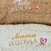 • kremowy ręcznik 100 x 50cm (+/-10% tolerancji rozmiaru) z haftem “Mama doskonała” i delikatną grafiką serca
