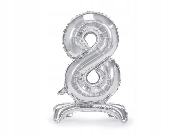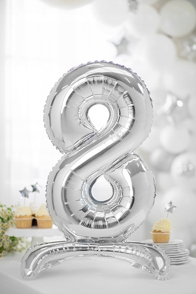Stojący balon foliowy Cyfra ”8”, 70cm, srebrny