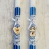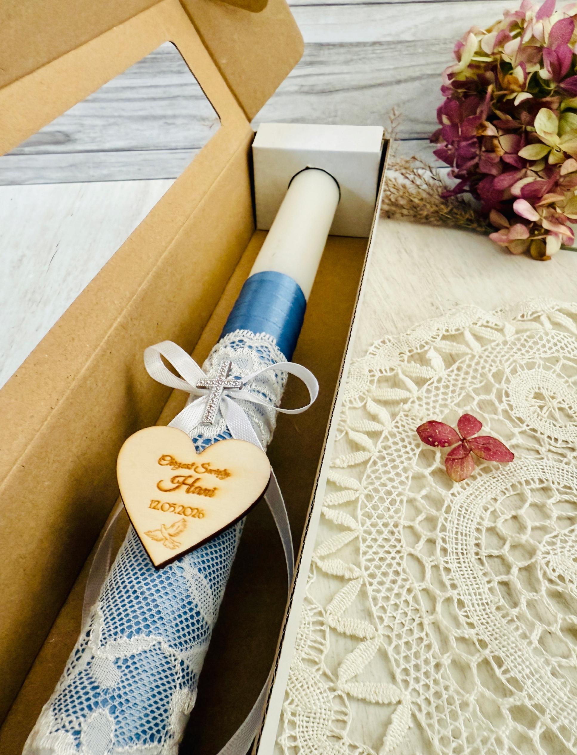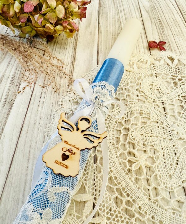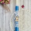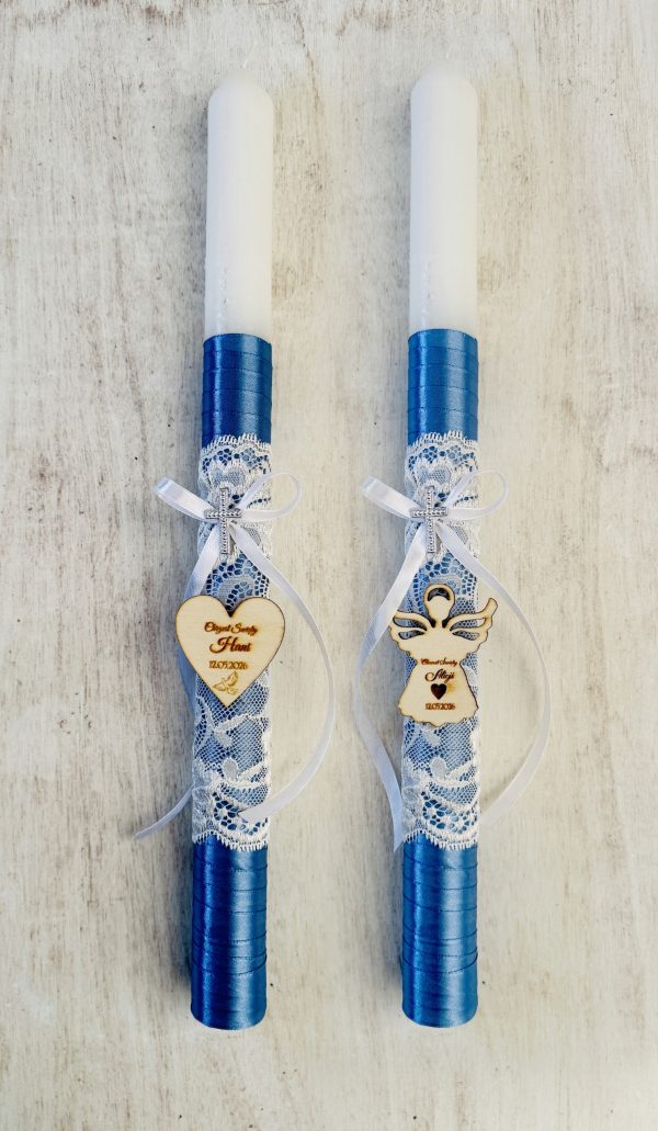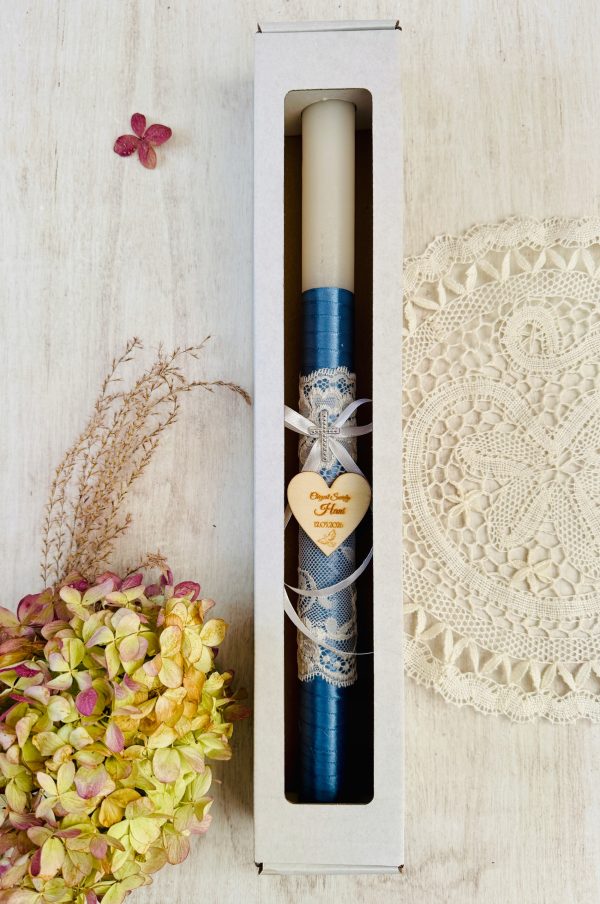 Świeca do CHRZTU GROMNICA na komunię ręcznie zdobiona satyna niebieska IMIĘ