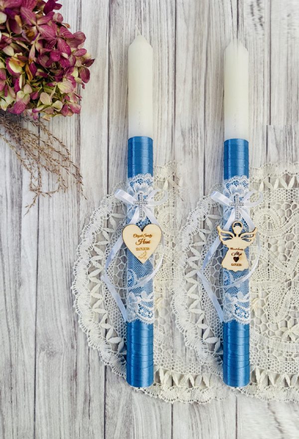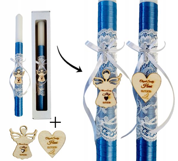 Świece do Chrztu ręcznie dekorowane satynowymi wstążkami oraz dodatkami, będą cudowną pamiątką, która pasuje zarówno dla chłopca jak i dziewczynki. Na tej akcji dodatkowo kupujecie Państwo produkt personalizowany. Możliwość personalizacji w formie IMIENIA i daty uroczystości dziecka, sprawia że świeca staje się wyjątkowa i osobista!