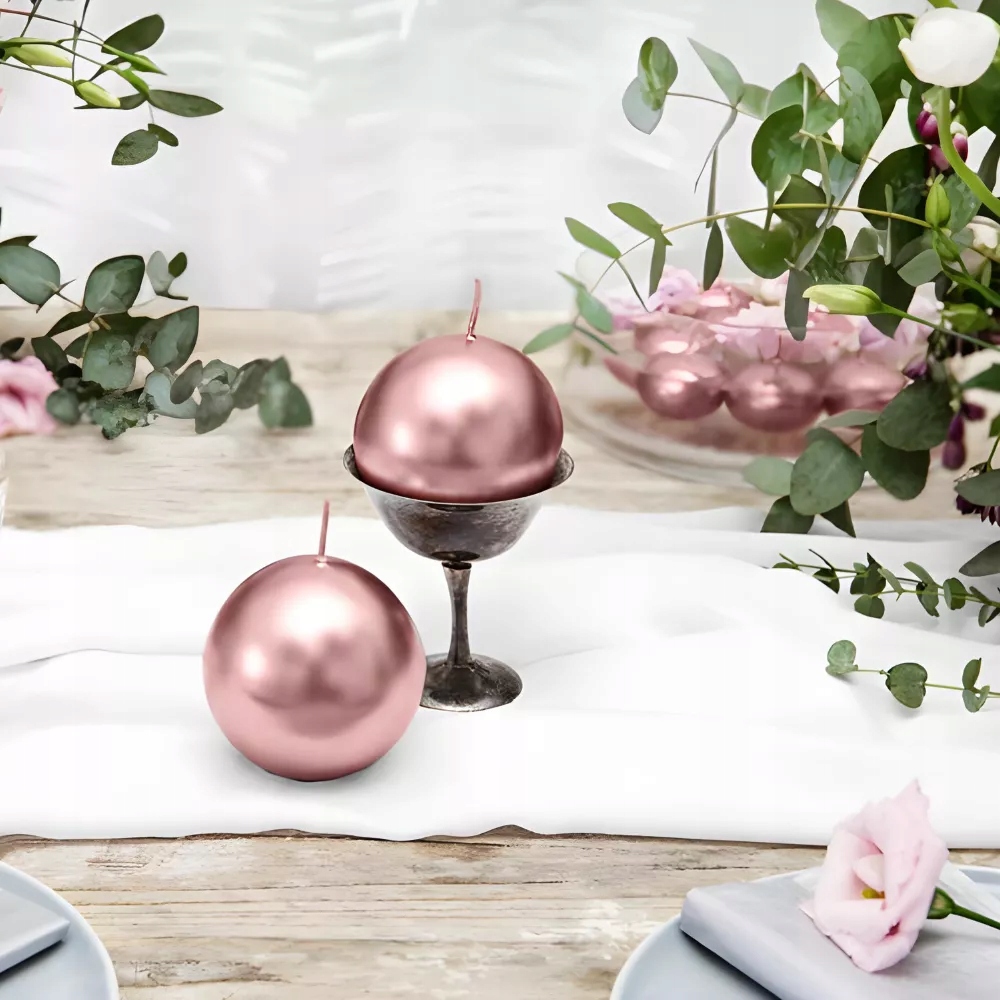 ŚWIECA METALIZOWANA KULA RÓŻOWE ZŁOTO 6cm DEKORACJA ŚLUB WESELE